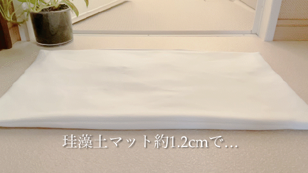 また、透水するが含水しない性質の不織布を使っているので、効率的に珪藻土混合素材へ水分を移動させることができます。薄く平らにすることで表面積が広がるため、吸水力もアップ。