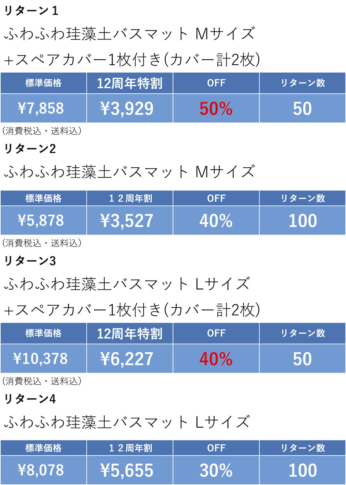 おかげさまでクラウドファンディンプロジェクト累積 19,380,602円 の柔らか・もちサラ珪藻土バスマットシリーズを12周年特割 最大50%でご提供いたします。これからの製品開発のためにも是非ご支援くだされば幸いです。