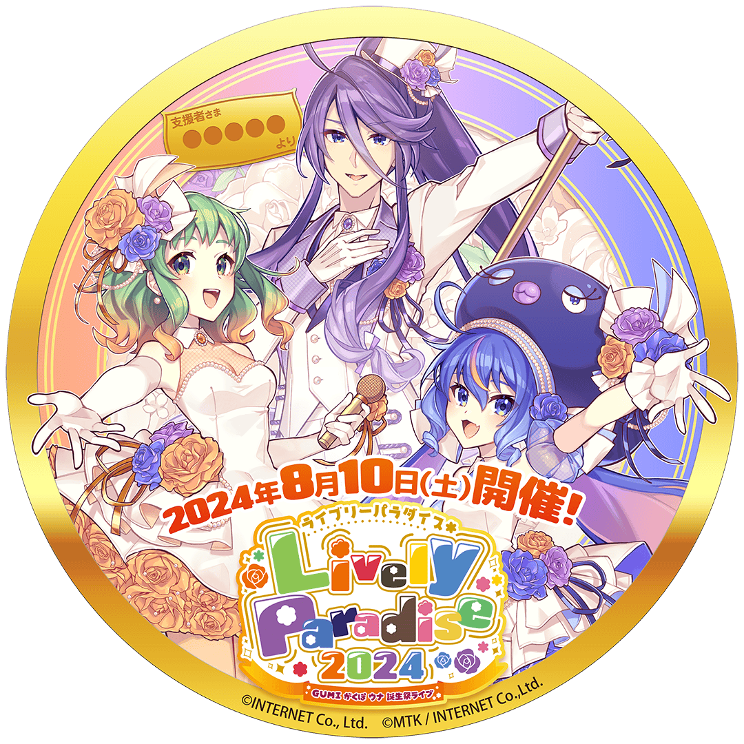 「GUMI がくぽ ウナ 誕生祭ライブ Lively Paradise 2024」#ライパラ2024 を実現し、ファンのみなさんと共に楽しみ、盛り上がりたいと思っております。
