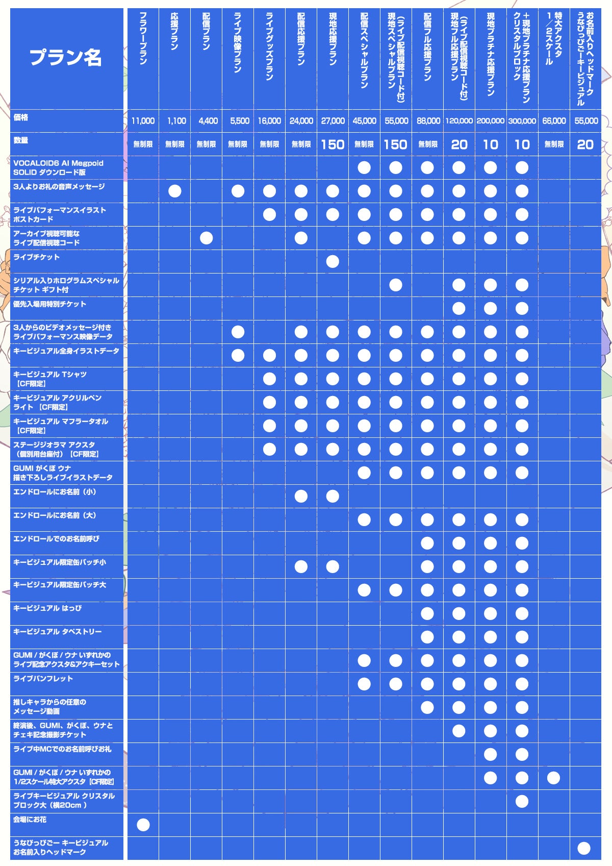 第3ゴール達成時にはさらに追加曲や衣装追加を含めたストレッチゴールも用意いたしますので、ぜひ、フル尺でのライブ開催に向けて皆様のご支援お願いいたします!