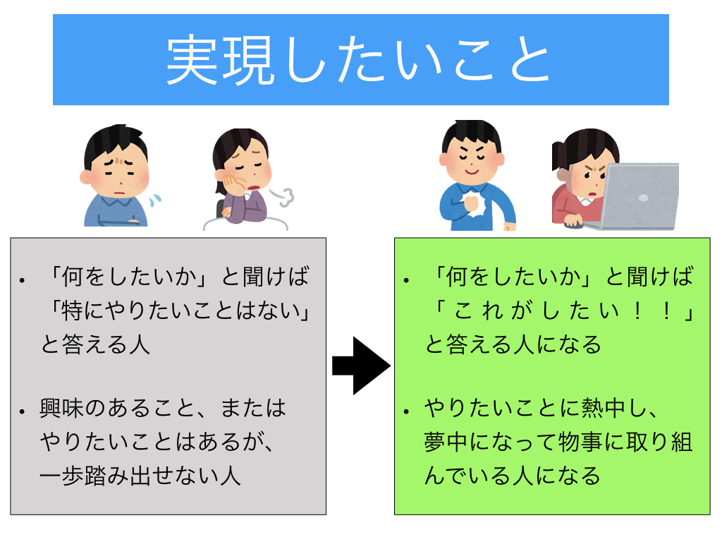 やりたいことは何でも良いと思っています。テストで良い点を取りたい、このゲームで一番になりたい、本を書いてみたい、こういう物を作ってみたい。