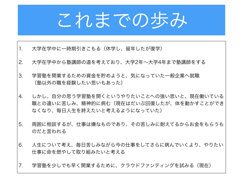 資金は全額学習塾の開業、運営のために使わせていただきます。