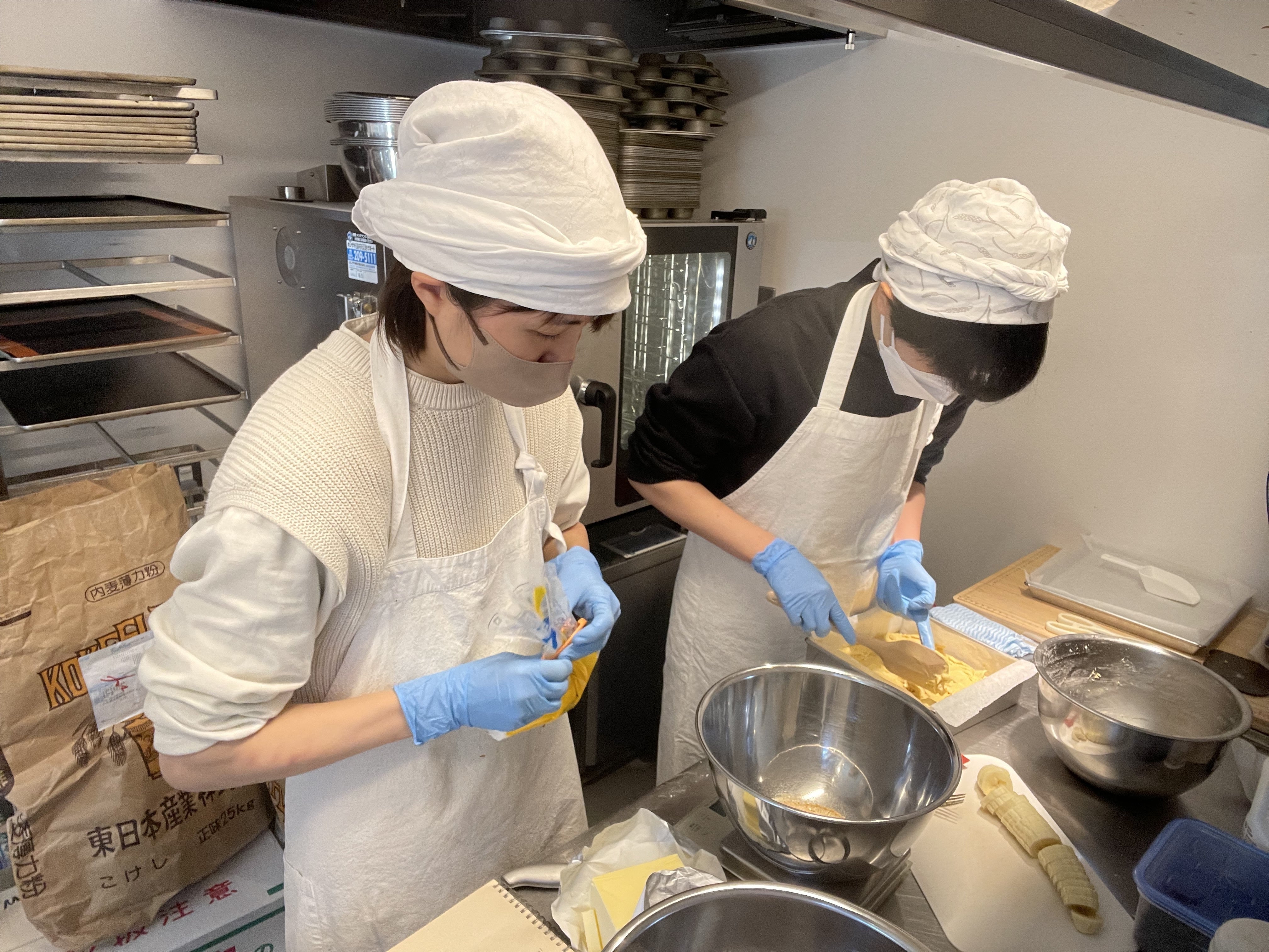 しかし、売れるお菓子の個数が増えるたびに、お菓子を製造する時間が足りずにスタッフの残業が増えていき、生産能力の限界にぶつかってしまいました。6年前のオープン時には想像できなかったほど大量の菓子製造をこなすには、今の厨房では小さすぎたのです。ミキサーやオーブンなどの厨房設備も小型で、同じ作業を1日に何十回、何百回と繰り返し、勤務時間も超過。特に催事出店の時には、店舗の営業をしながら大量のお菓子を製造することは不可能で、店舗をお休みして出店のための製造に専念しなければならないという矛盾が生じる事態に。せっかく遠くのお店まで足を運んでいただいたにも関わらず、出店のため臨時休業でお客さまをがっかりさせてしまうというシーンもたくさんありました。ここ数年は、とにかく生産性の課題が山積み。