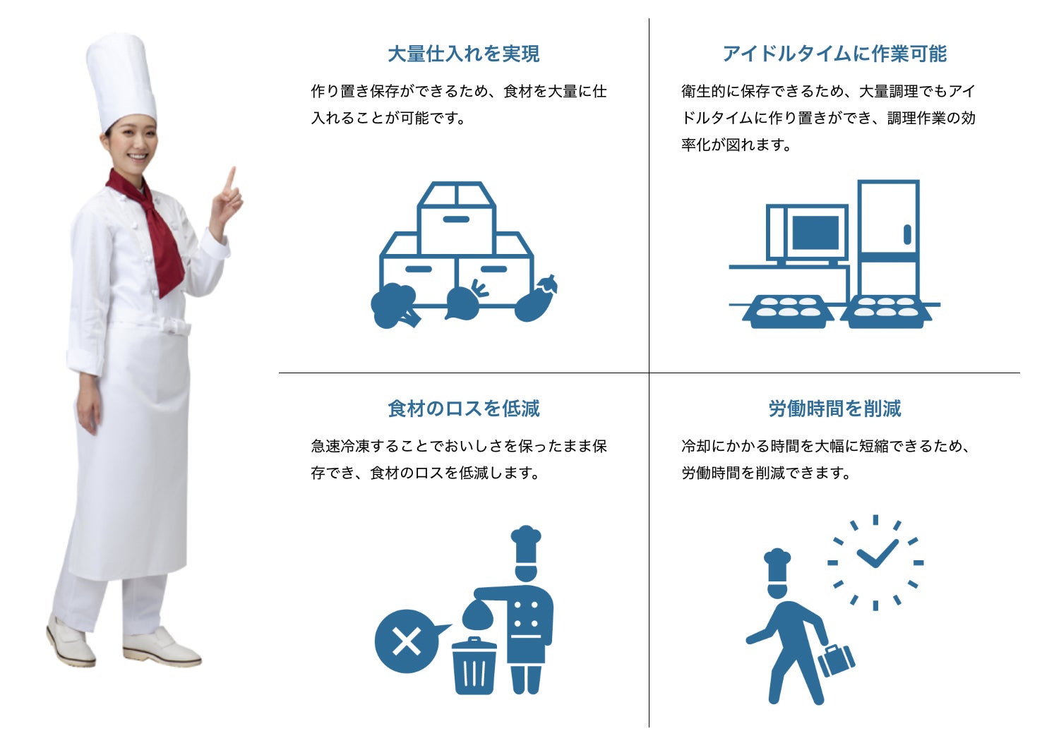 今回、クラウドファンディングで集まった支援金は、食品を急速冷却できる機器「ブラストチラー」の購入費にあてさせていただきます。ブラストチラーという設備、なかなか聞き馴染みのない方も多いと思いますが、一言でいうと、衛生的に食品の品質管理をするための機器です。