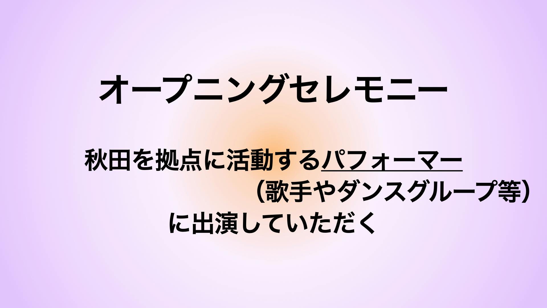 また、秋田を拠点に活動する歌手の方やダンスグループなどとも提携して、パフォーマンスをしてもらってイベントを盛り上げてもらいながら、秋田には素晴らしいパフォーマーの方がいることを皆様に知ってもらいたいと考えております。