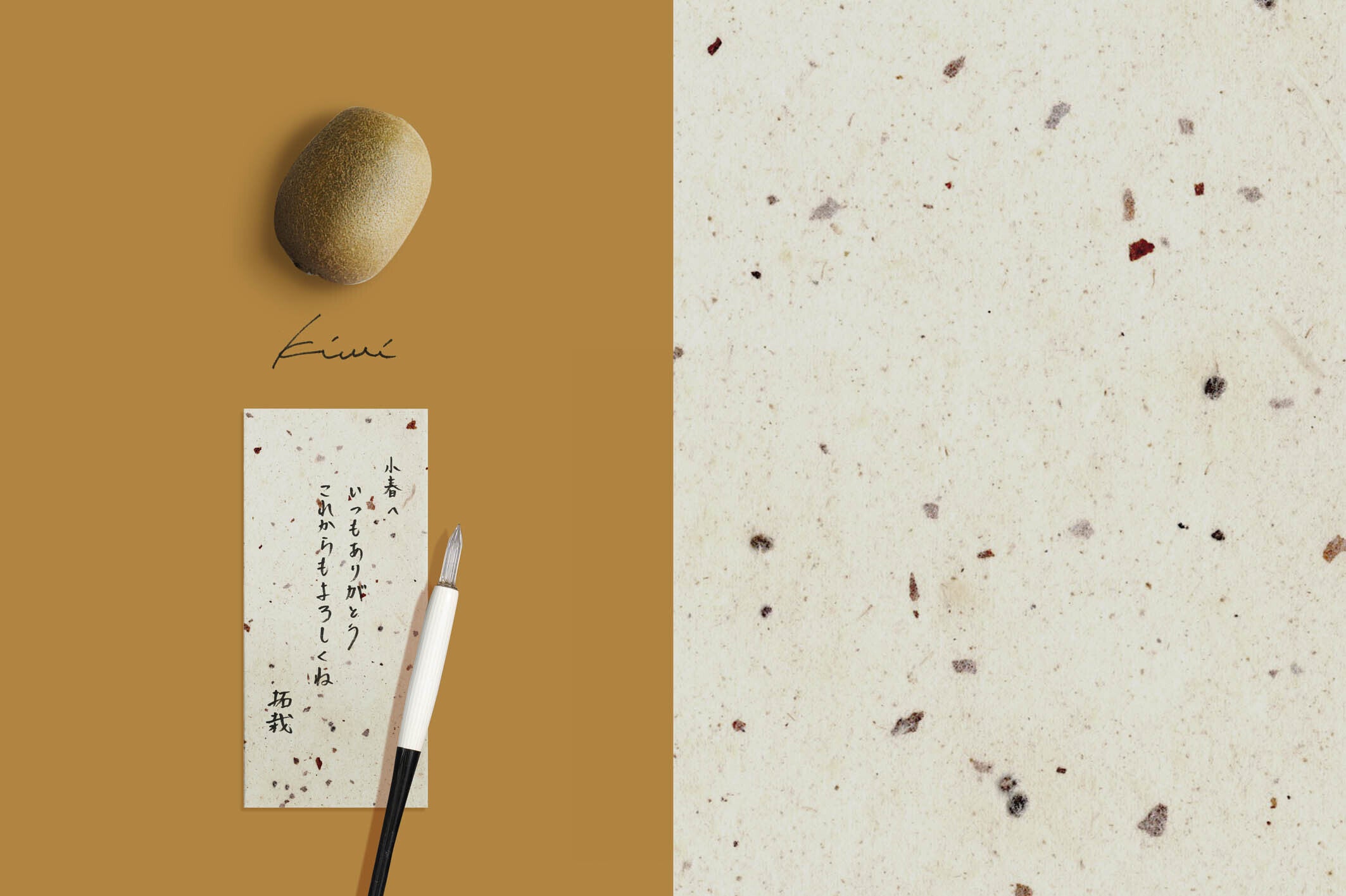 キウイの力強い果皮がゴロゴロと目立つ和紙の個性溢れる仕上がりです。