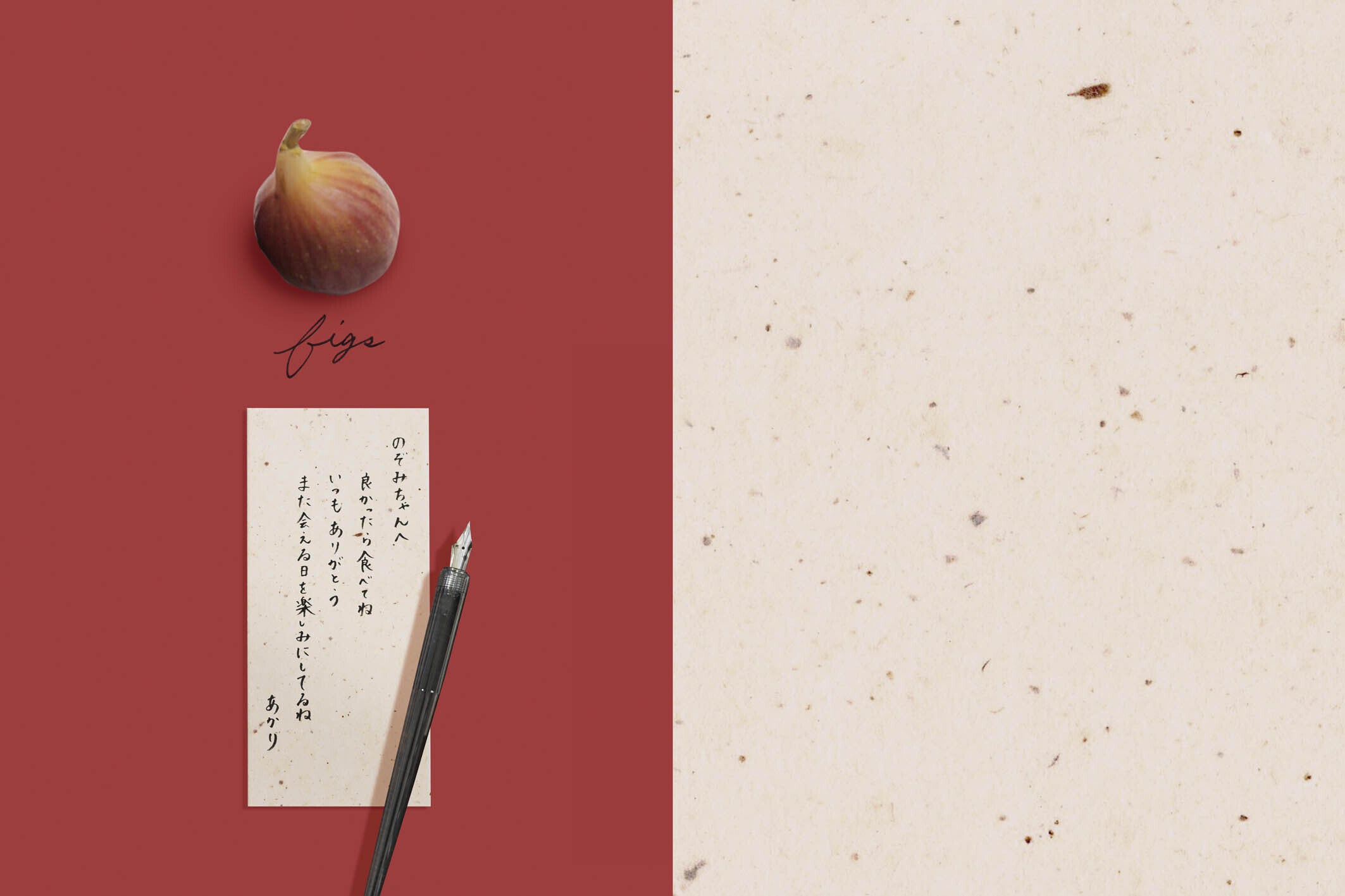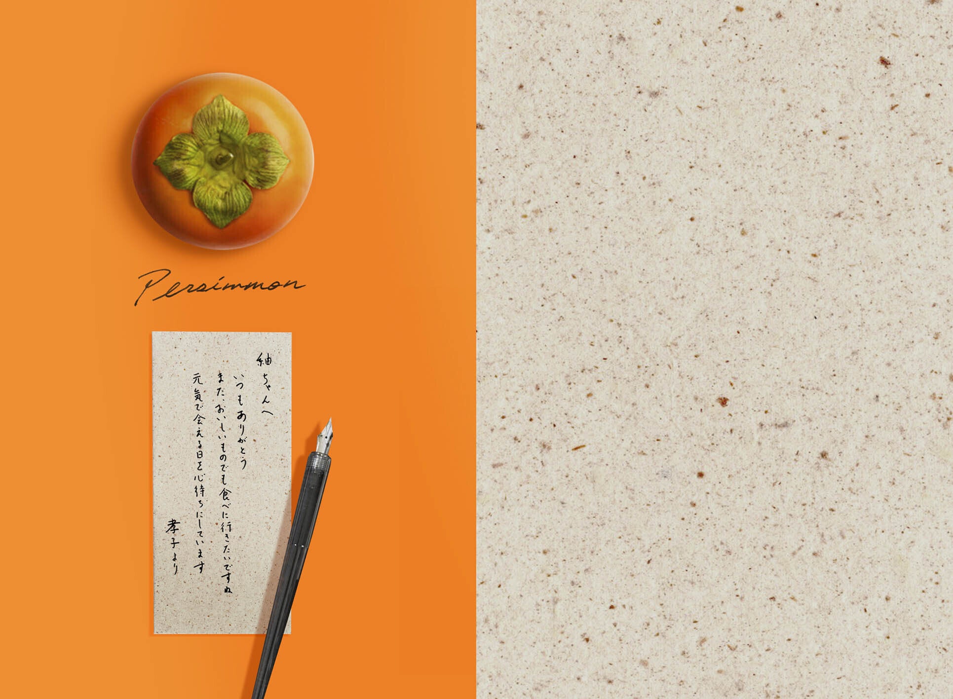 シンプルで心のこもった言葉が、くだもの和紙の風合いによって、やさしく丁寧な印象で伝えることができます。