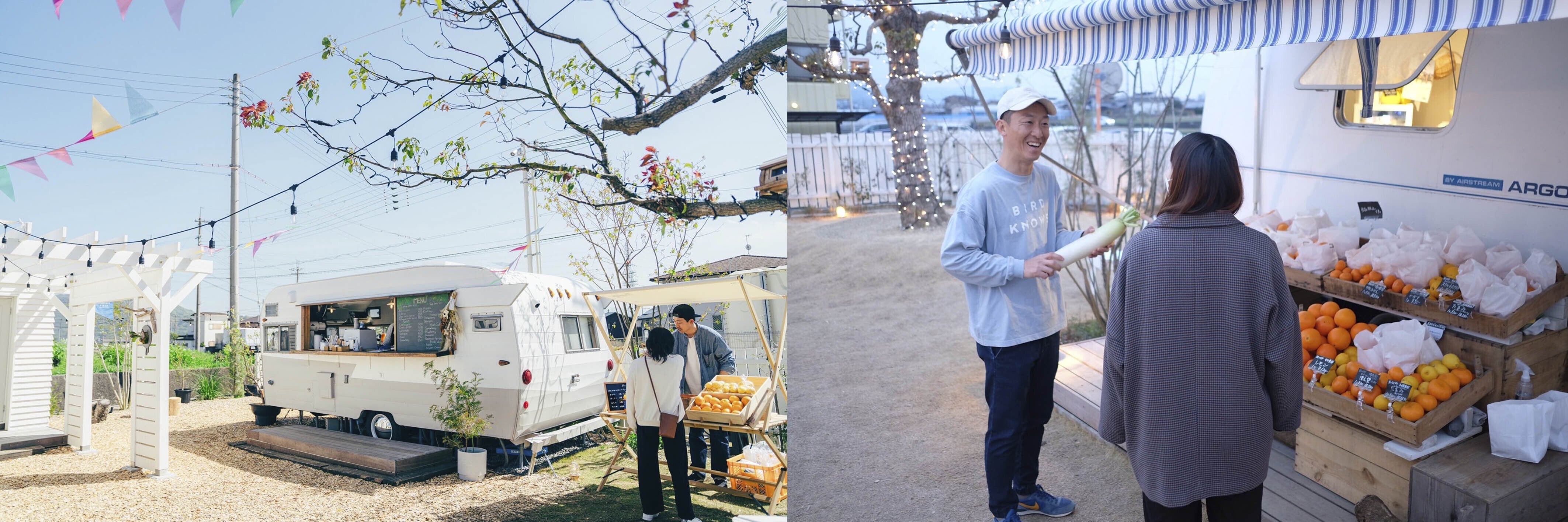まつばら農園で廃棄していたものの中で、美味しいのにただ見た目が悪い果物についてはSNSや直売所、飲食店さんを通じて販売することでほんの少しですが廃棄を抑えることができましたが、それでもまだまだ廃棄はなくなりませんし、他園さんのものにも当然手が付けられませんでした。そこで私は紀の川市の中心にBIRDCALL FIELD (バードコール フィールド)という八百屋&カフェの運営を始めました。まつばら農園の作物だけでなく他園さんの農産物の販売と加工を行ない日持ちしない物や見た目が悪い作物の消費に努めております。ですが、力不足もあり、それでもまだまだ廃棄は続きます。