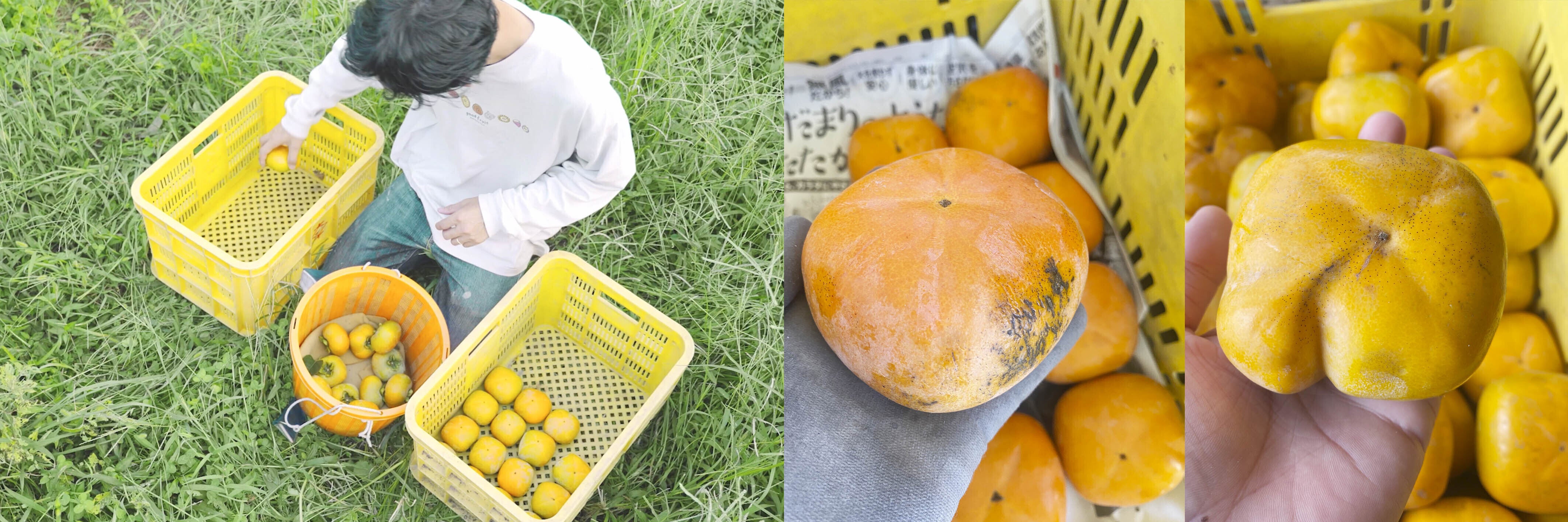 元々、大学卒業後は住宅会社にて営業をさせてもらっておりましたが、2015年より実家の農業を継ぎ、晴れて農家になりました。しかし、そこで目にしたのは大切に育てた作物の畑での廃棄でした。流通途中で腐っていまいそうなものや変形、傷などの出荷規格に合わないものが畑で捨てられていたのです。作物が捨てられる様子を見て、畑のロス問題に目を向けることになりました。すると、まつばら農園だけが畑で捨てているのではなく、周りの農園すべてで同じことが起こっていたのです。紀の川市は果物大国で果物の生産量が多いからこそ、畑での廃棄も多いことを知りました。ちなみにまつばら農園では毎年約2tの作物が畑で廃棄されています(メインの柿だけで約1.5t)。一年間大切に育てた宝物だからこそ、収穫時に畑で捨てていることが悔しくて悲しかったです。なんとかしないといけない!!『のうかのしゅくだい』を感じた瞬間でした。