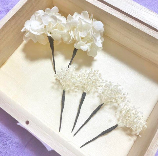 ハンドメイド髪飾りはお店でもヘアセットされたお客様にご提供しており、自分で作りました。