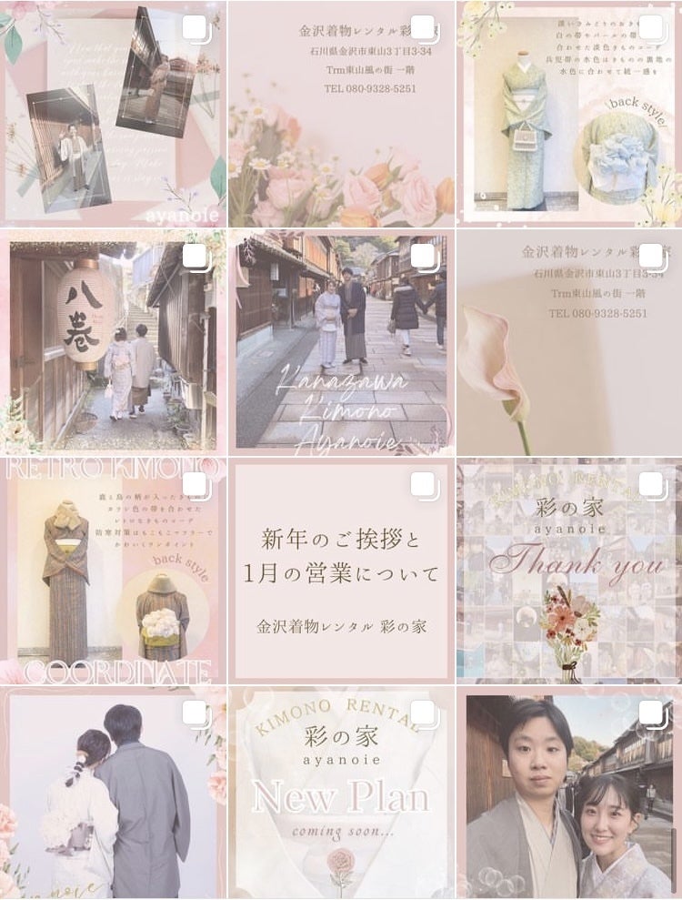 金沢着物レンタル彩の家です。レトロな着物、ニュアンスカラーの着物など『今っぽい』が叶う♡