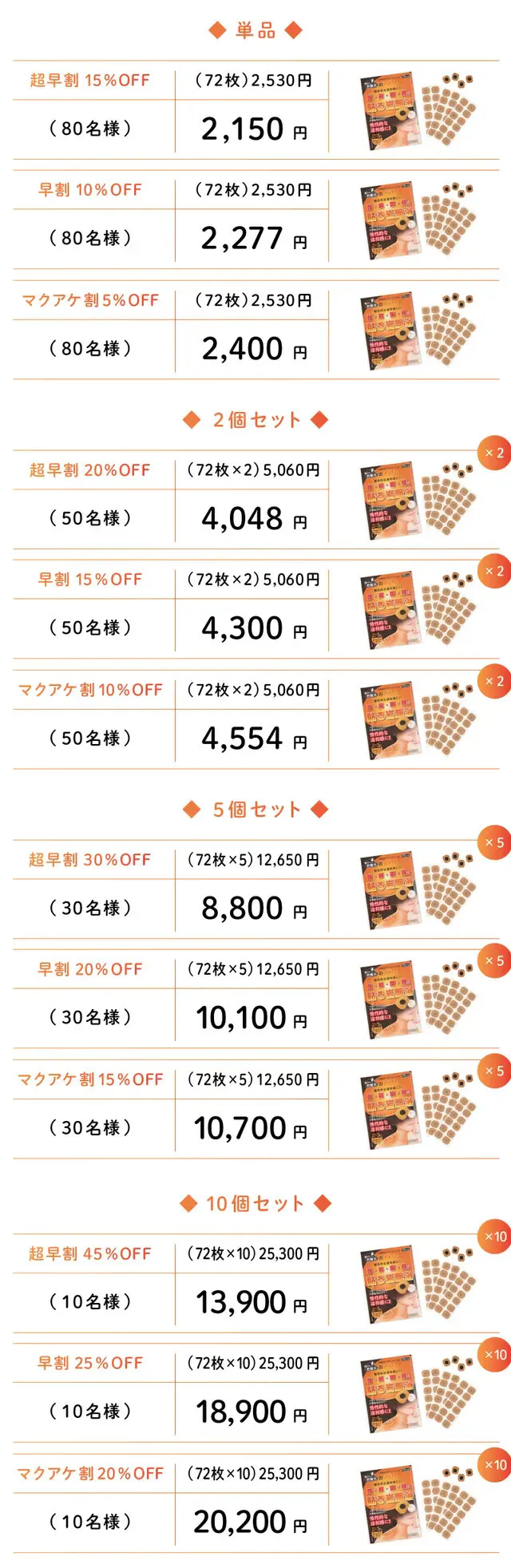 ピンポイントで温めたい場所に、複数枚を2~5日貼ってください。