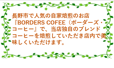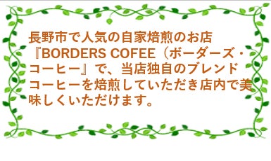 長野市で人気の自家焙煎店『Borders Coffee』の店主にご協力をいただき丁寧にブレンドした珈琲で、以下の2種類の中からお好きな物をお選びいただけます。