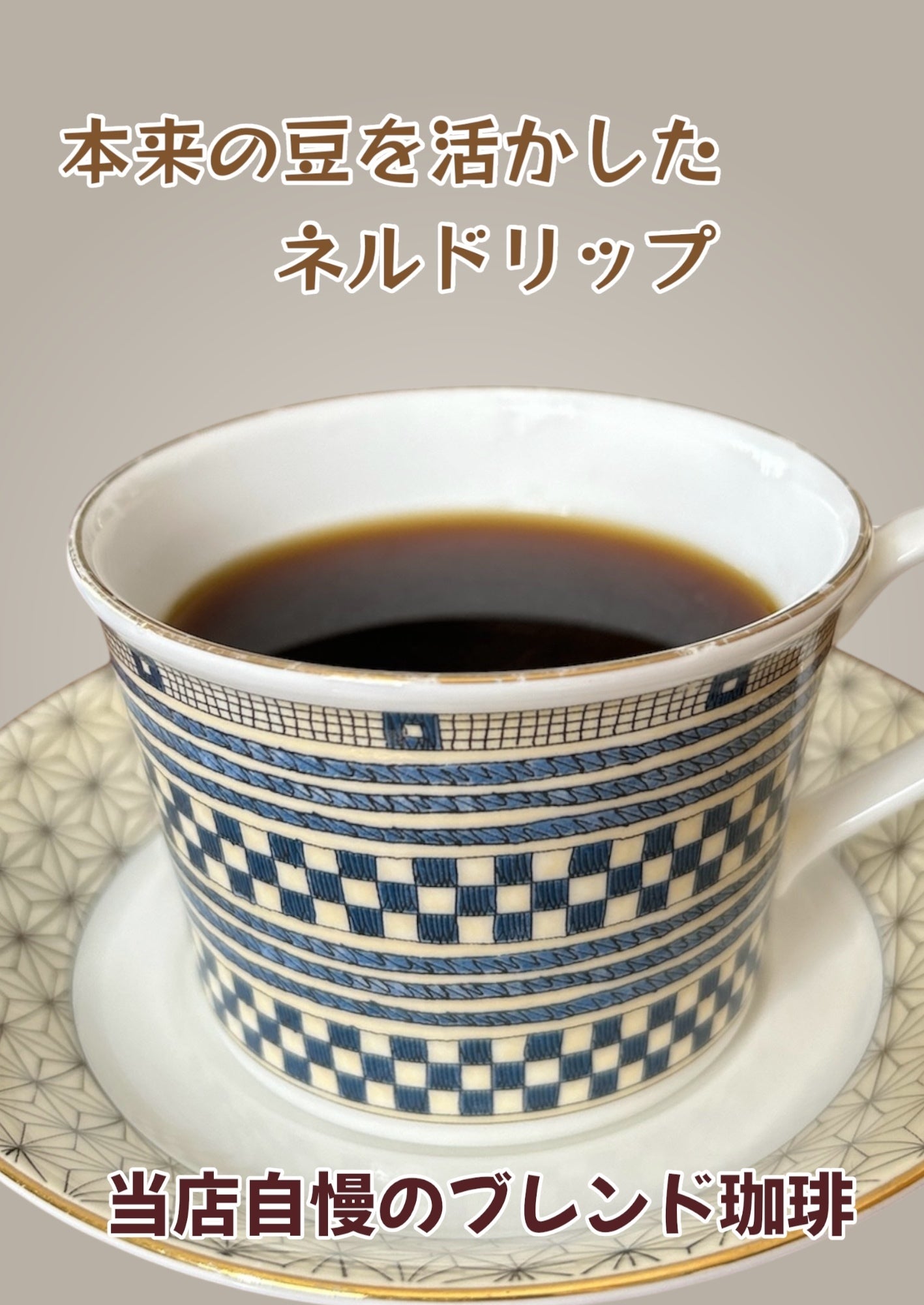 珈琲にも拘りを追及しました。長野市で人気の自家焙煎の珈琲店『BORDERS COFEE』の店主と共同開発した、当店自慢の自家焙煎ブレンドコーヒーです。コーヒーは1杯ごとに豆を挽いて、本来の豆の風味を活かしたネルドリップで1杯づつ丁寧に淹れます(アイスコーヒーも同じく)。