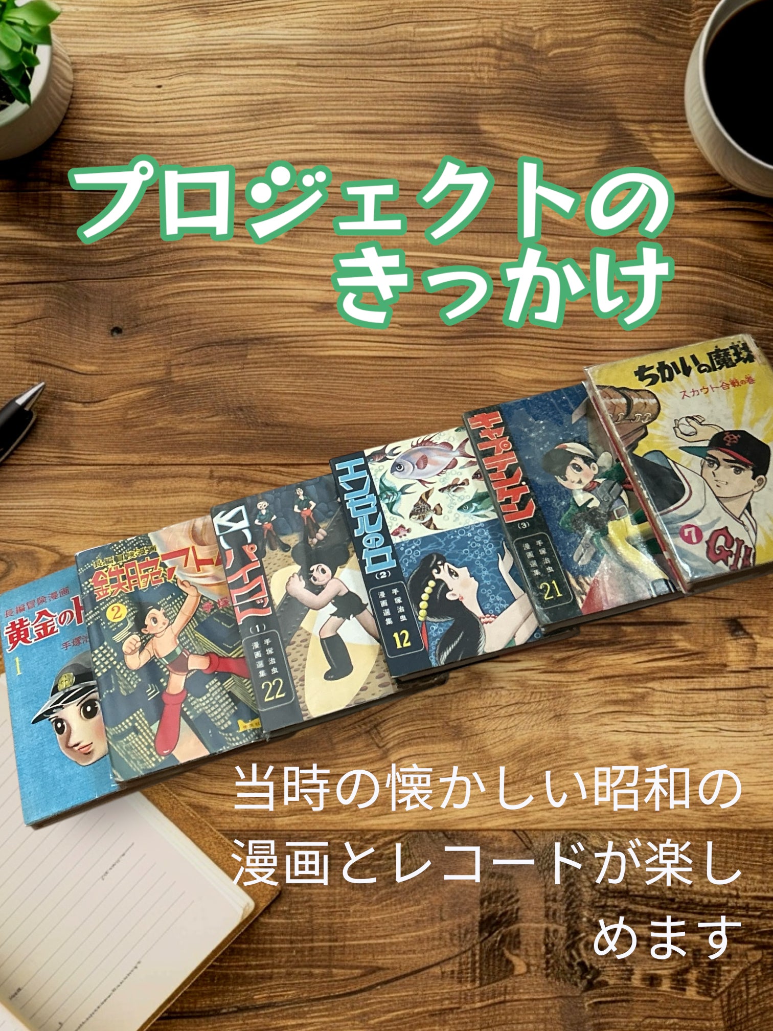 昭和の懐かしい漫画を読みながら、カフェを楽しむ