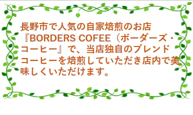 長野市で人気の自家焙煎店『Borders Coffee』の店主にご協力をいただき丁寧にブレンドした珈琲で、以下の2種類の中からお好きな物をお選びいただけます。