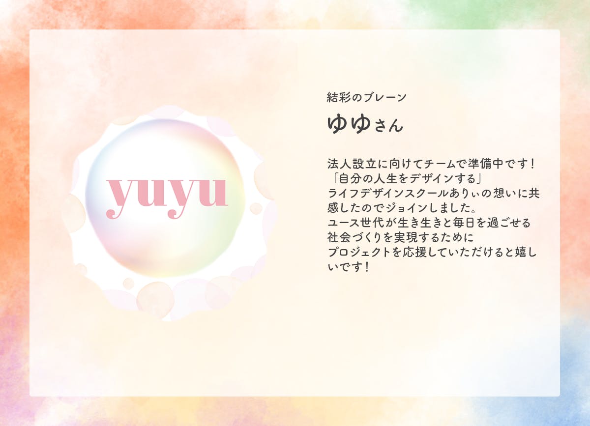 はじめまして、ライフデザインスクールありぃ発起人のゆっか(竹田結香)です。