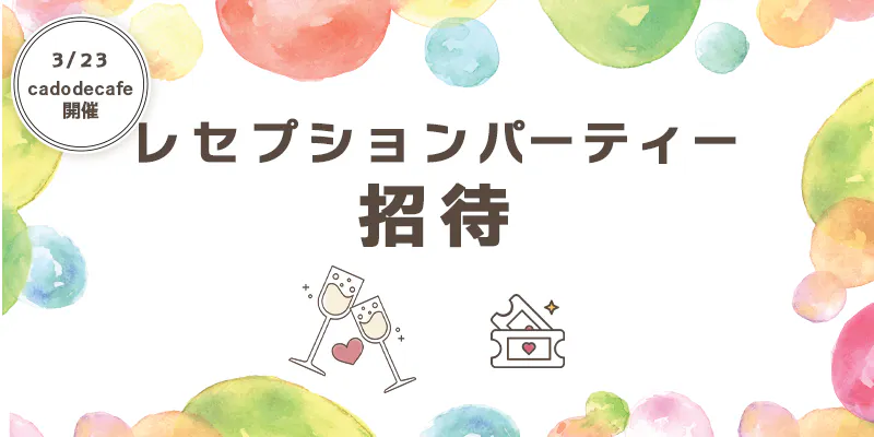 ケーキ・軽食付きのカジュアルな立食形式で行うレセプションパーティーです。