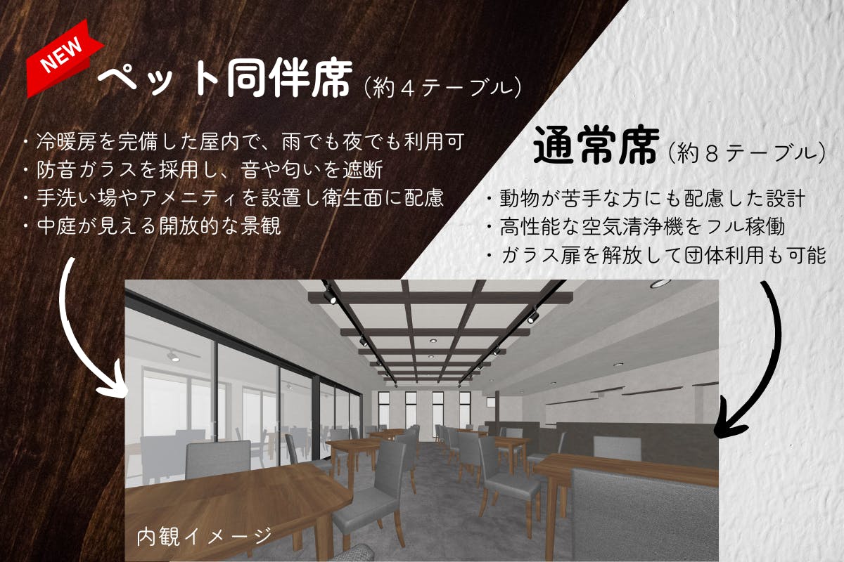 ◆ 屋内の4テーブルをペット同伴席とし、全天候で利用可能とする