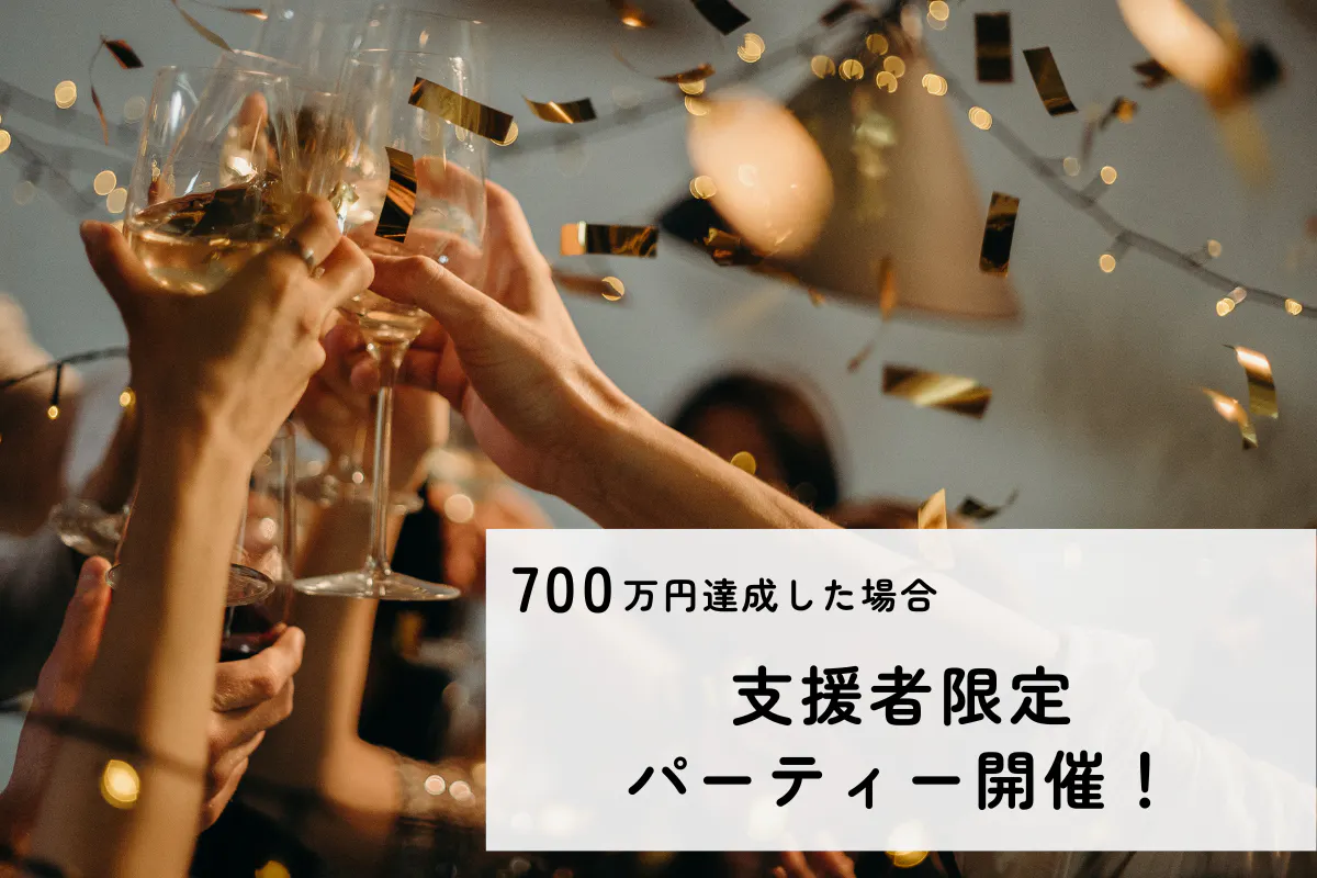 このパーティーの開催が実現し、支援者全員が笑顔になっていただけることを願っています。どうかお力添えくださいますようお願いいたします。