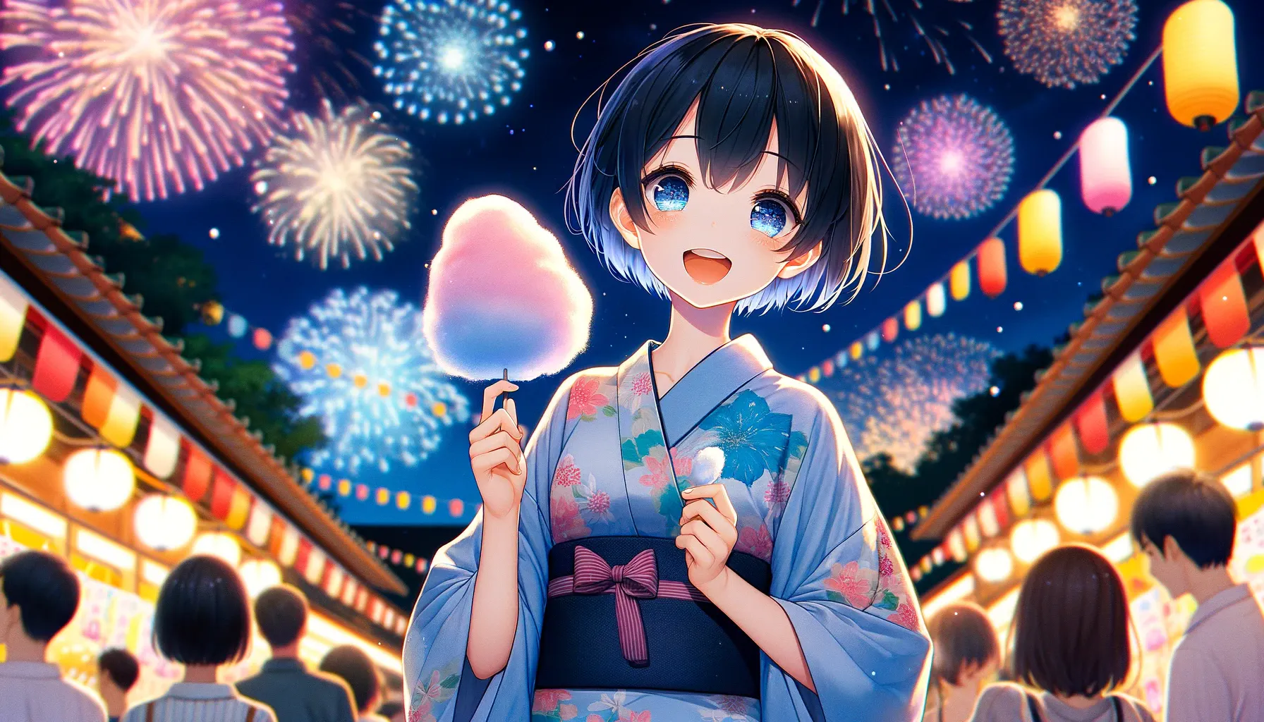 だんだん楽しくなり、夢中になって何枚か生成していた時、花火を背に、最高の笑顔を見せる彼女に出会いました。
