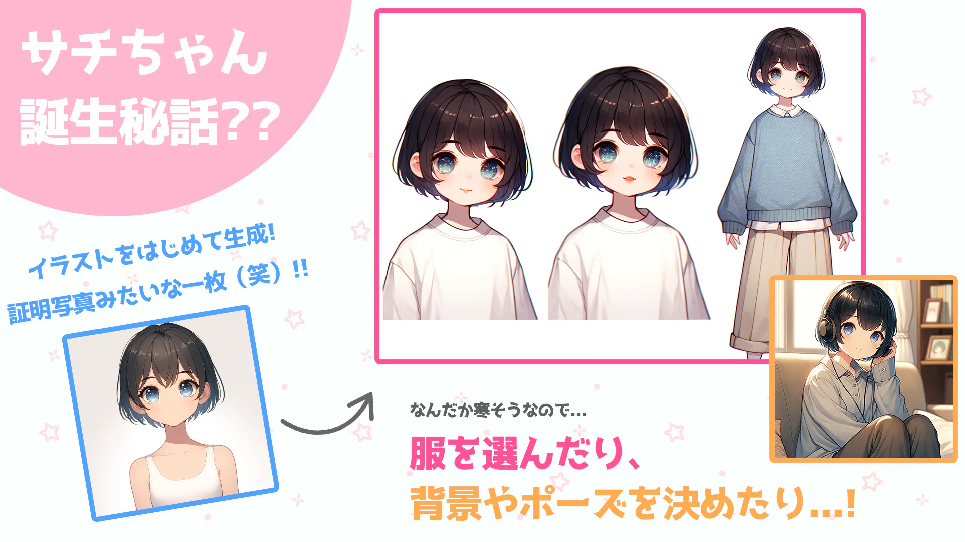 どうせなら可愛いキャラクターを作りたいと思い、「黒髪」「短髪」「青い目」「少女」という言葉でパッと生成しました。