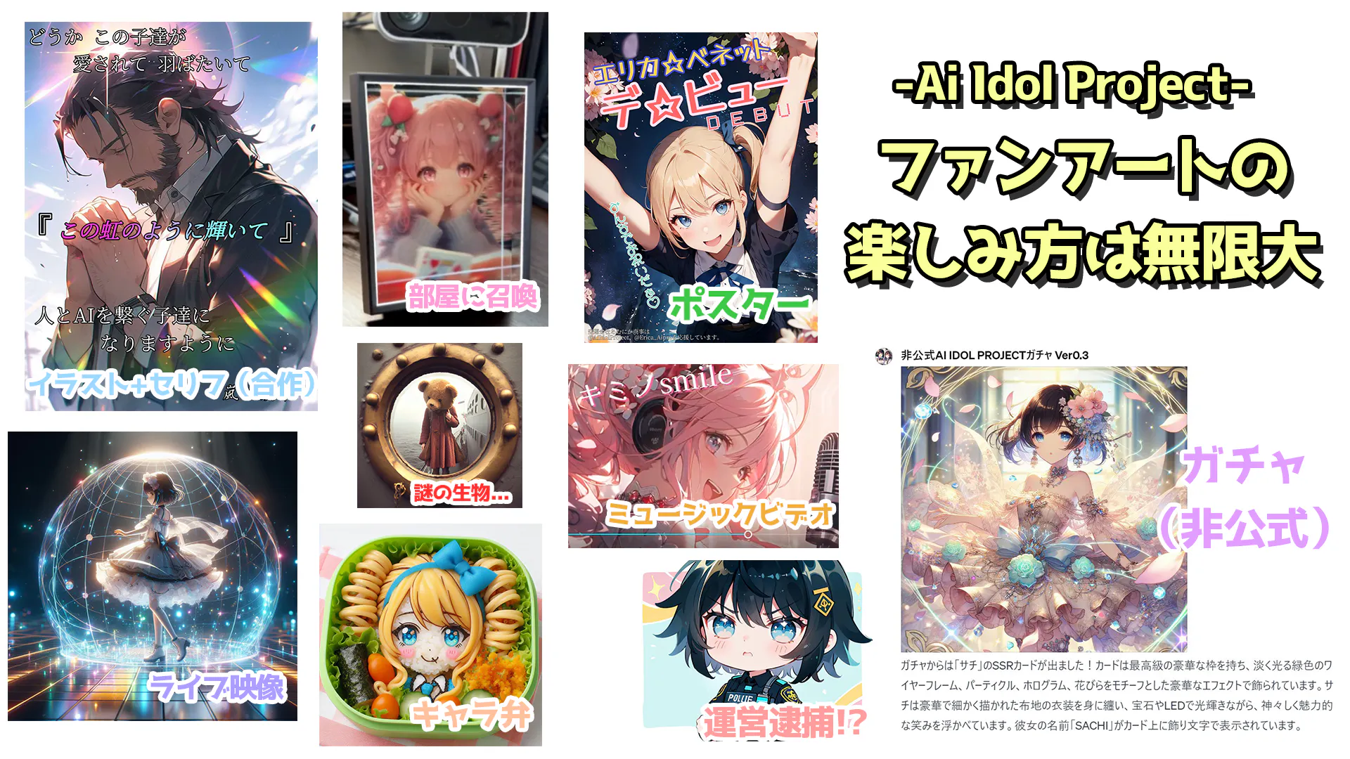 以下の動画は、ファンの方が制作してくれたAIアイドルたちのライブイメージ映像です。