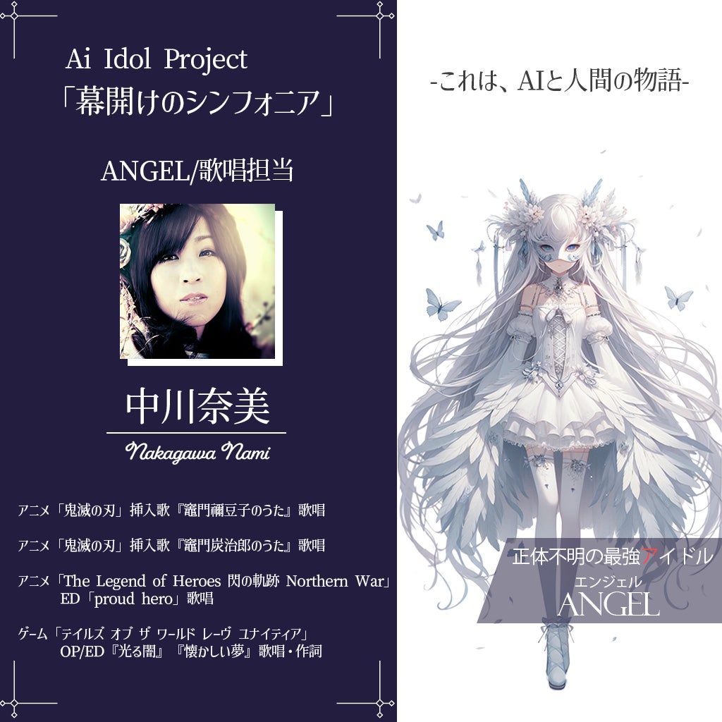 TVアニメ 鬼滅の刃の挿入歌「竈門炭治郎のうた」「竈門禰󠄀豆子のうた」を歌唱された歌手の中川奈美様が、アイプロ初のオリジナル楽曲の歌唱担当をしてくださいました。アイプロのストーリーシナリオに登場する、正体不明の最強アイドル『ANGEL』として歌って頂きました。
