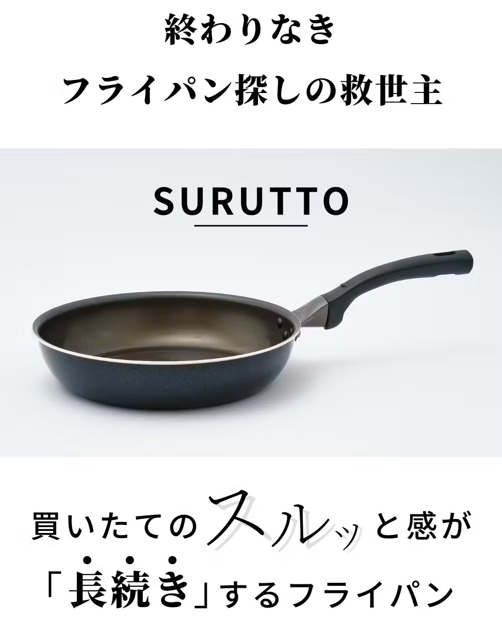 ※SURUTTOのコーティングは、フッ素塗膜加工の1種です。素材の特性上、強火や空焚きの禁止などいくつかの注意事項があります。正しい使い方は公式ホームページにてご紹介しております。サポーターの皆さまに、より長持ちを実感していただきたいので、ぜひご覧ください。詳しくはこちらです