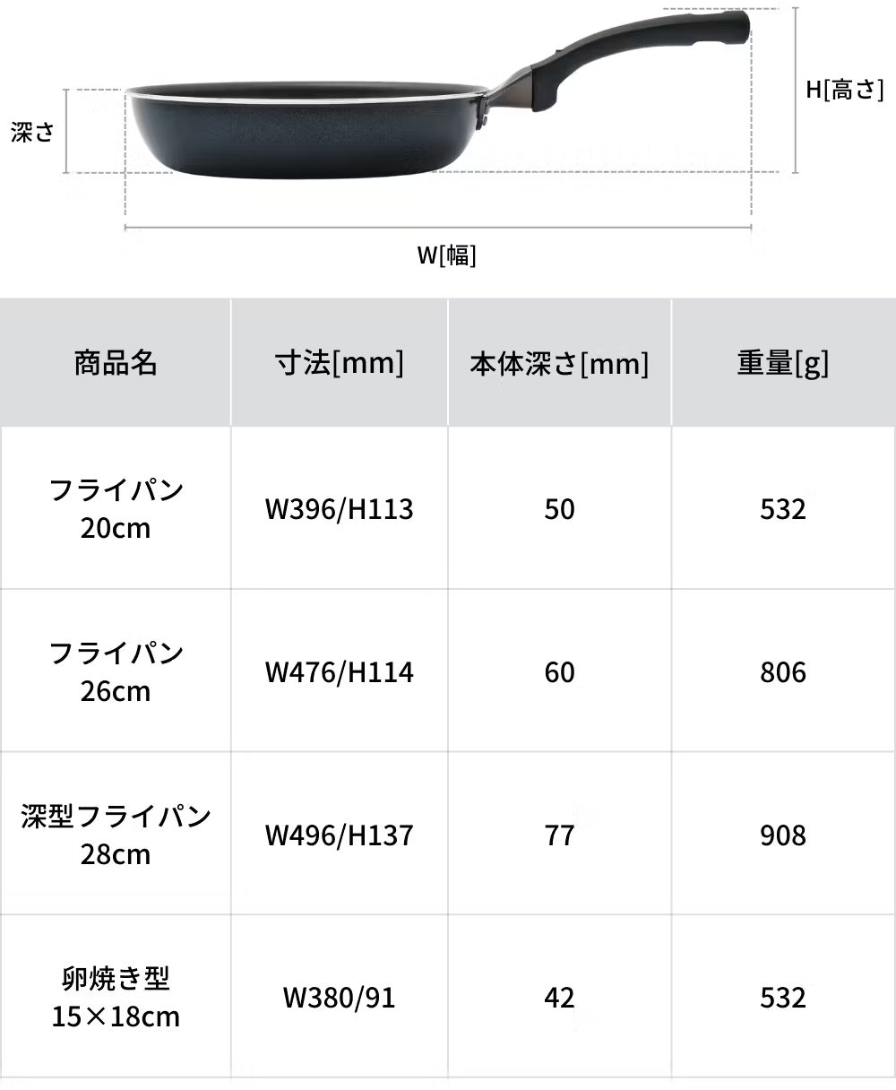 ※フライパンを重ねる際は布等を挟むようにしてください。