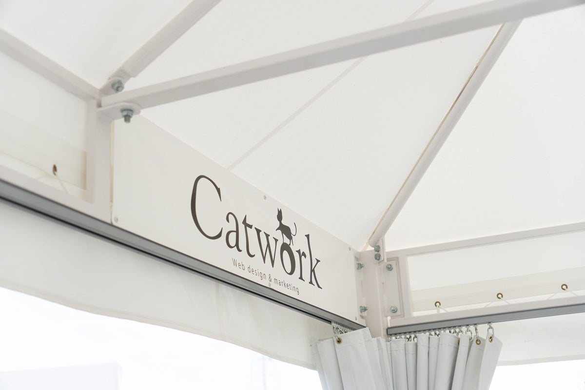 ②テントの中に会社名or店舗名or個人名を入れさせて頂き、HPでもご紹介をさせて頂きます。