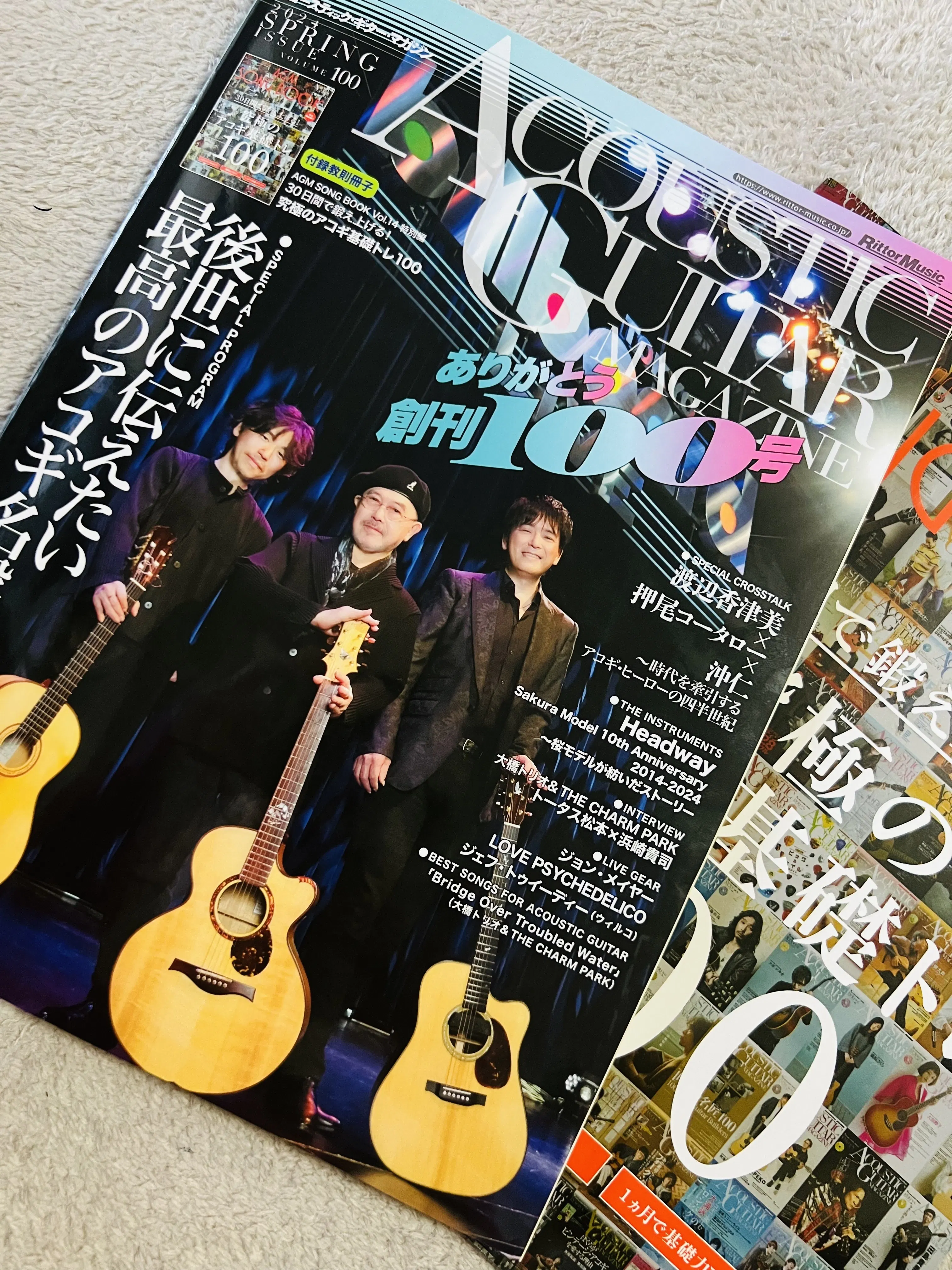 画像は、アコースティックギターマガジン創刊100号!
