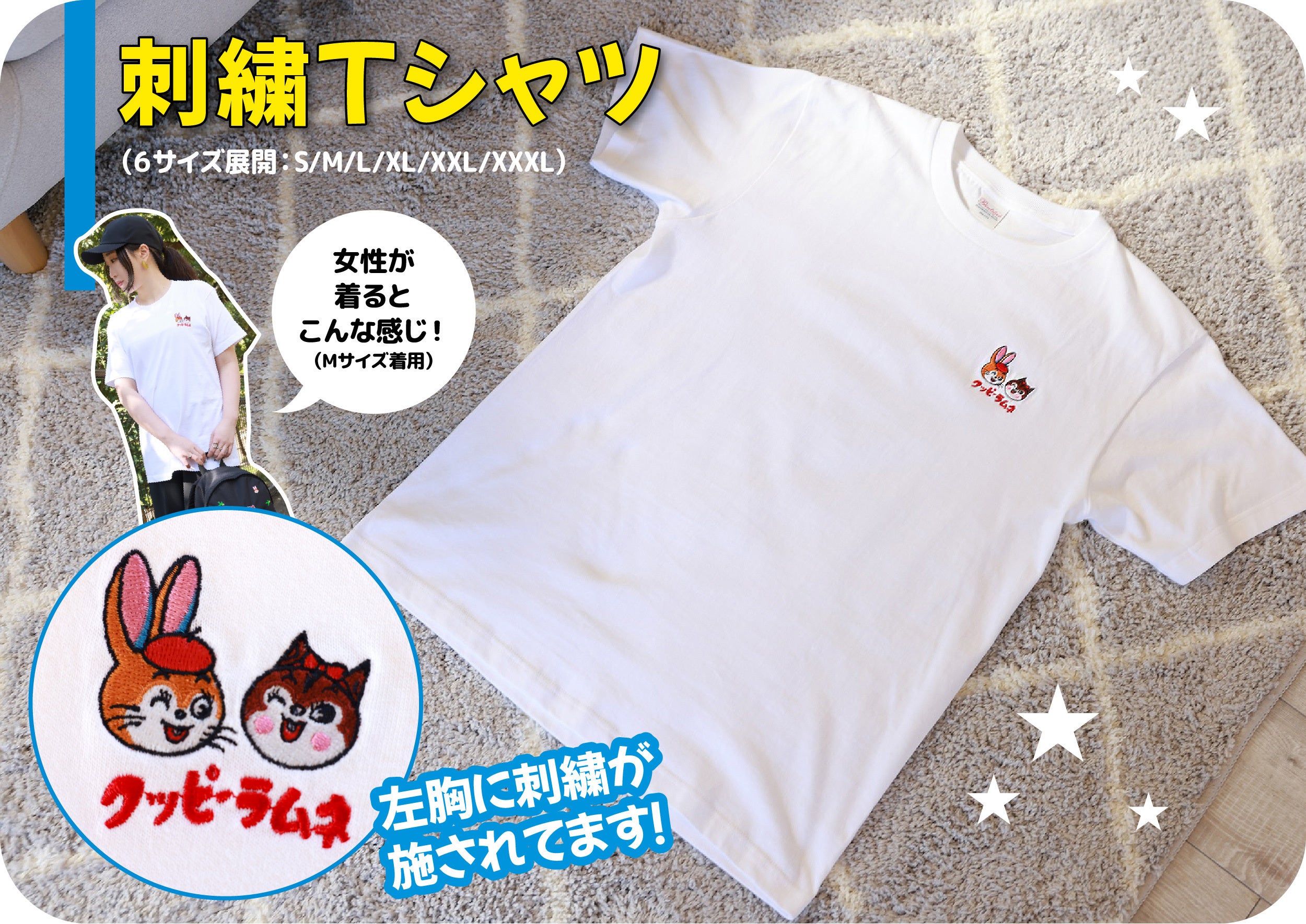 クッピーラムネのキャラクターが散りばめられたレトロで可愛らしいデザインです。