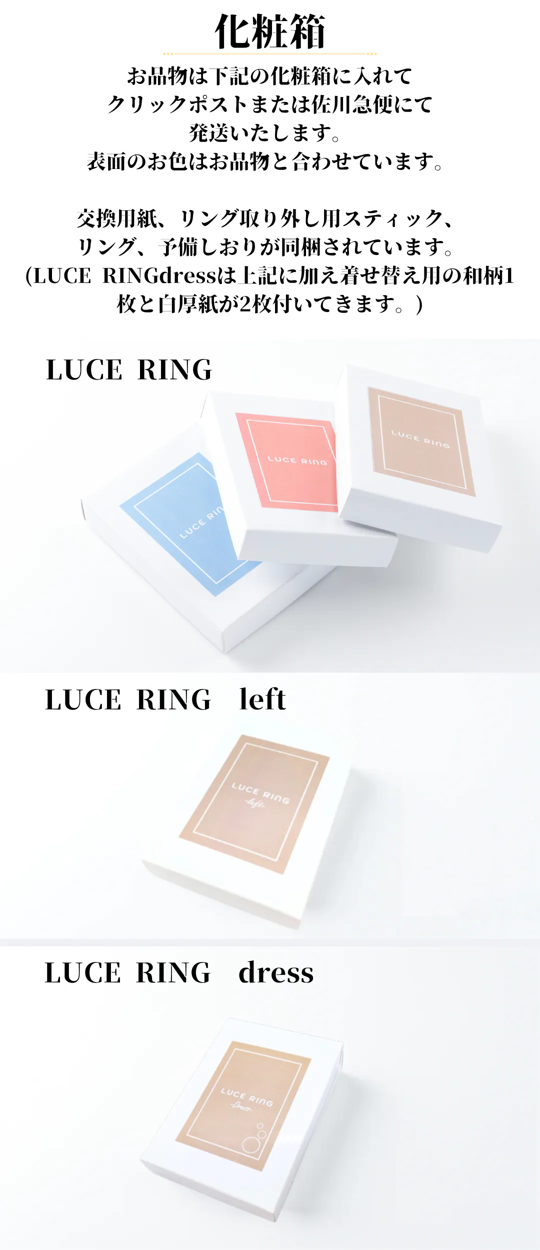 LUCE RINGは化粧箱に入れて、クリックポストまたは佐川急便にてお届けします。