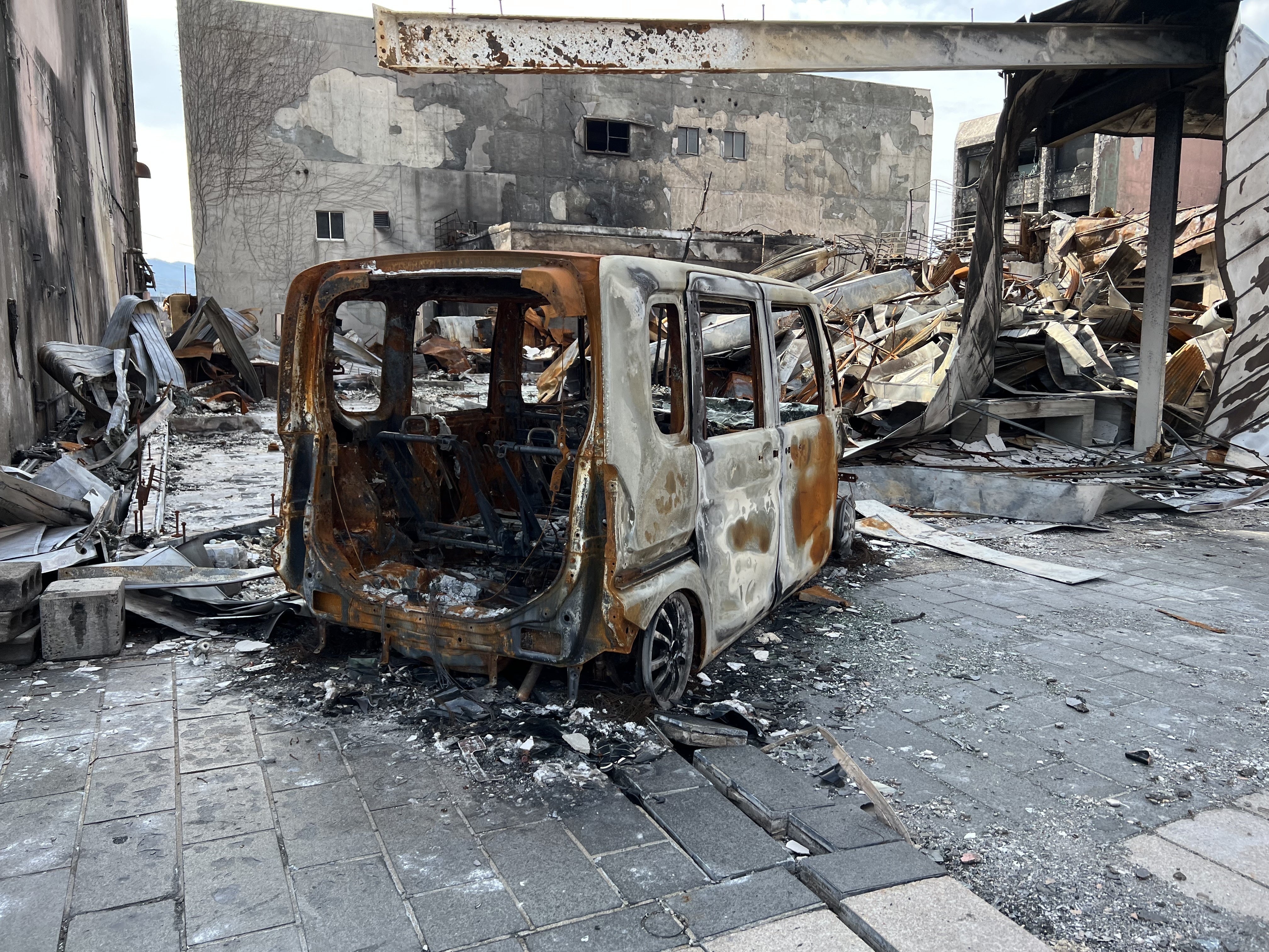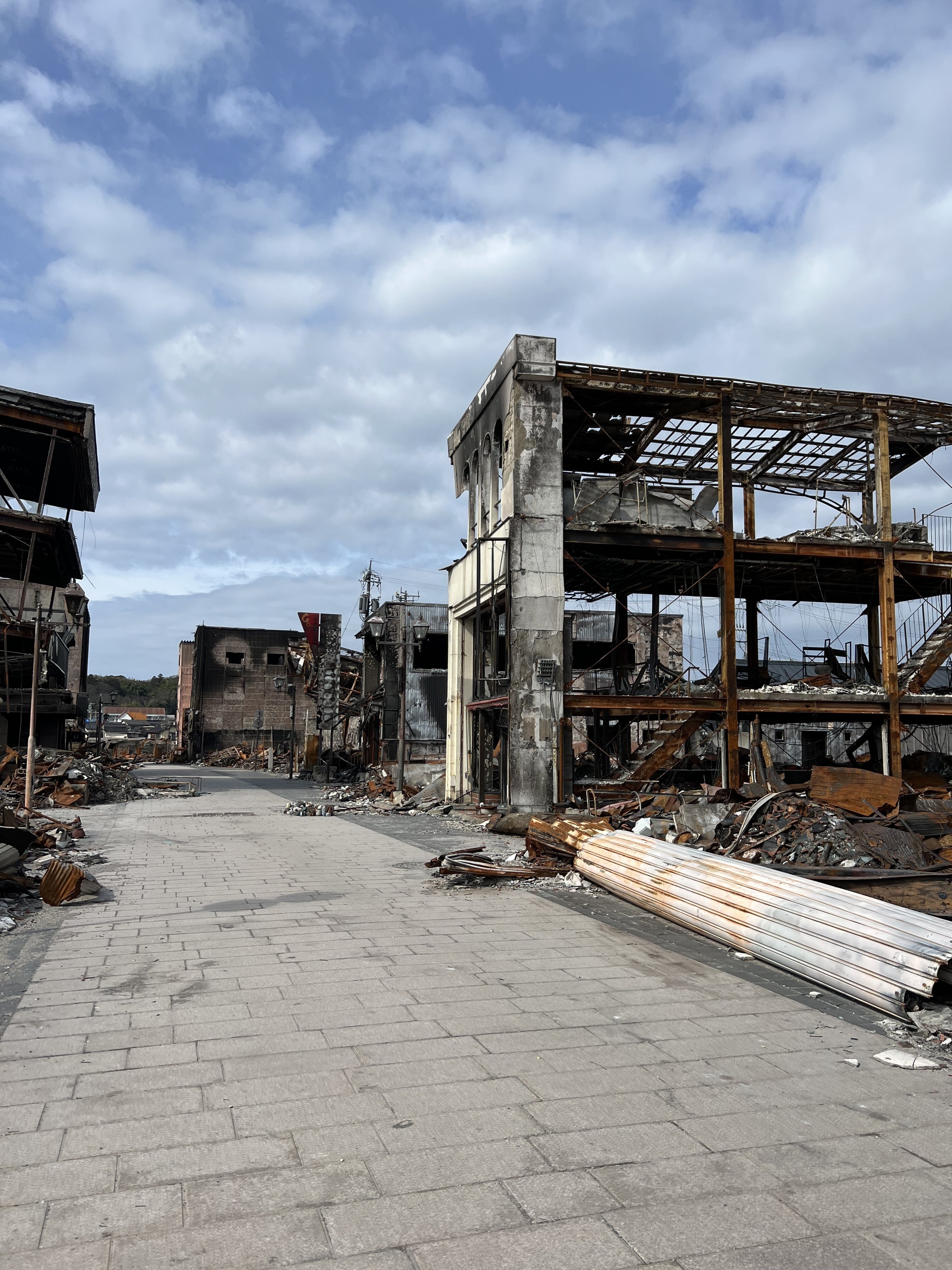 荷下ろしなどの手伝いを終えた後、大規模な火災で大半が焼けてしまった朝市へ