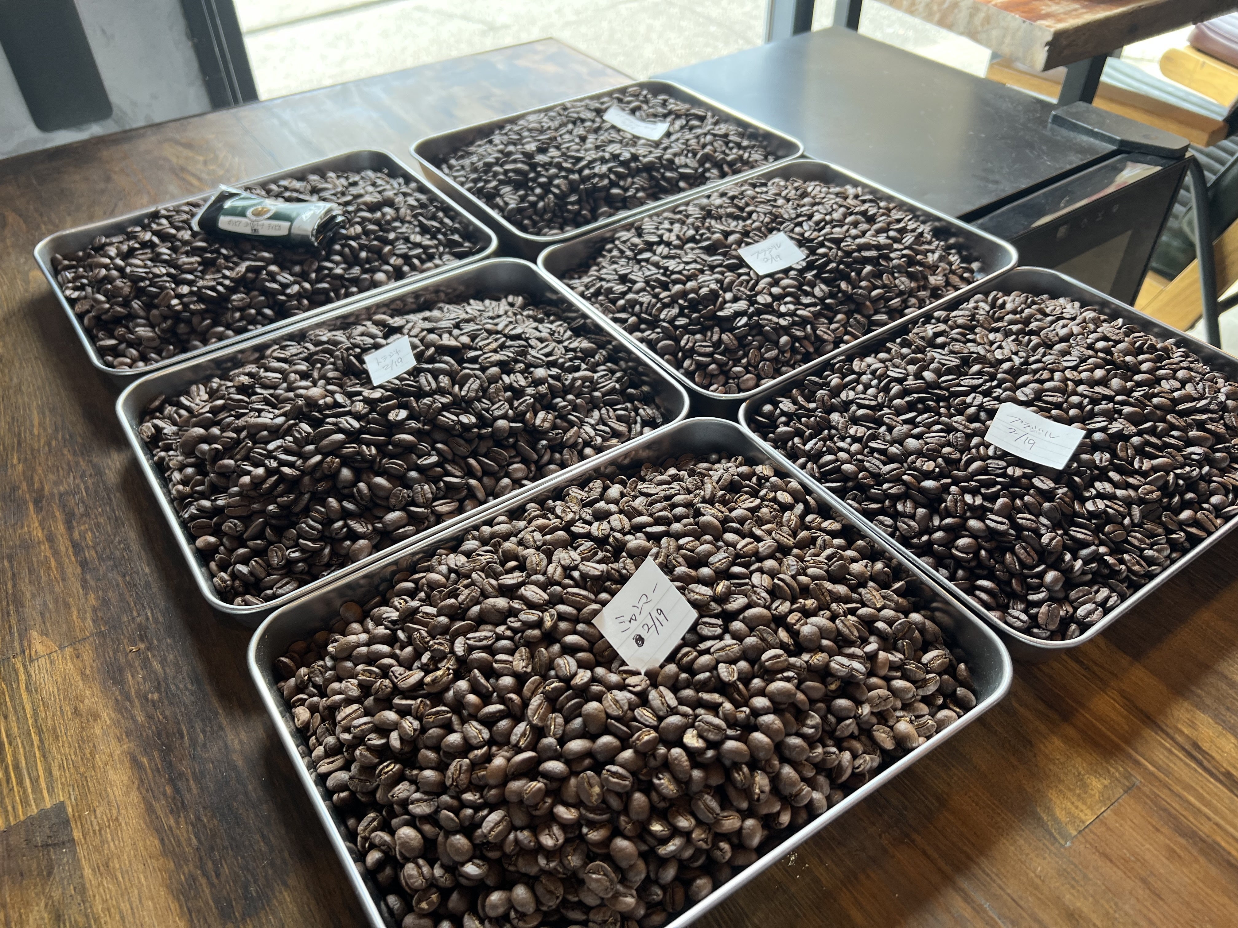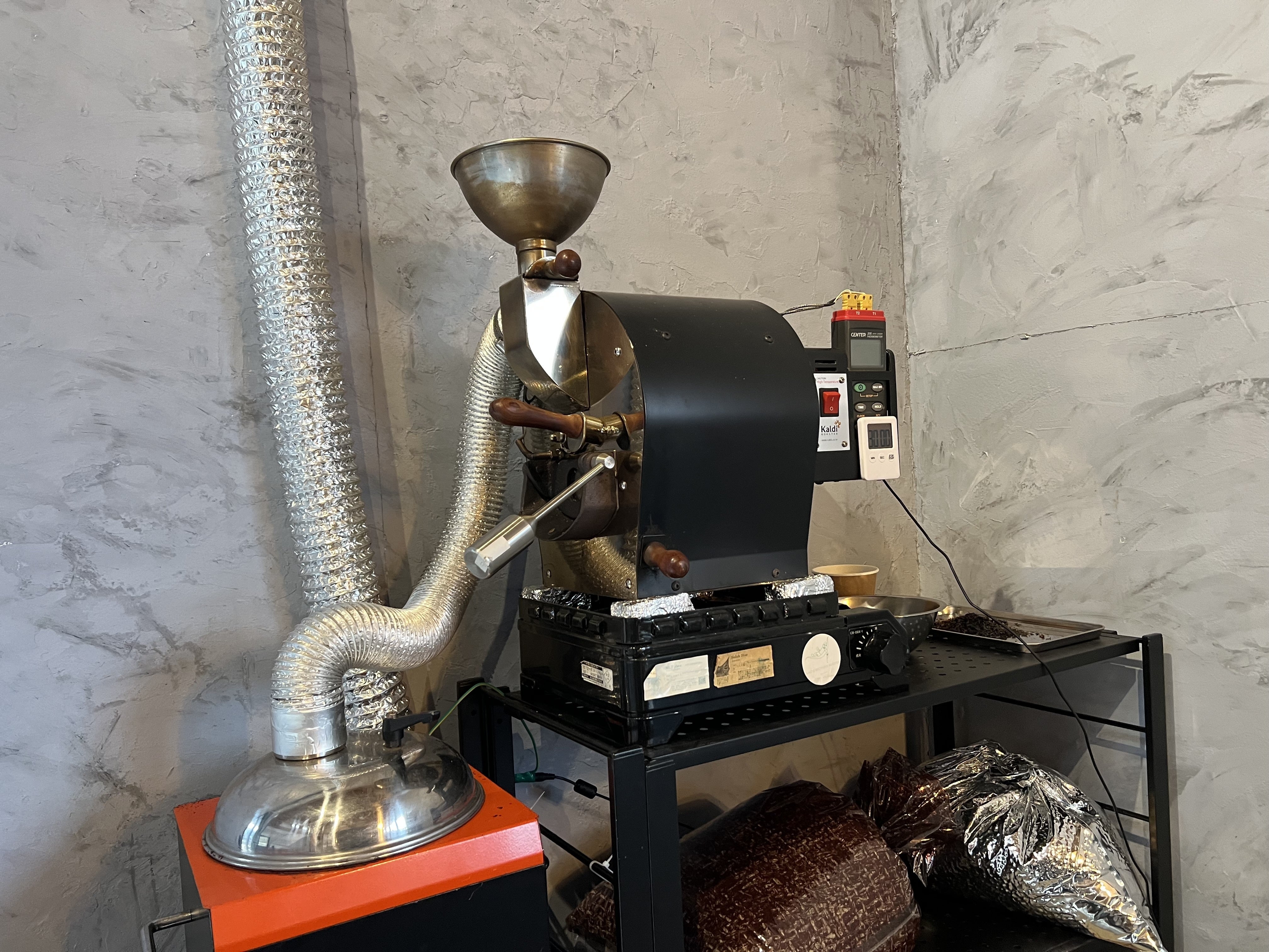 今後長期間店舗での営業が出来ないと見込まれるので、店内に焙煎機を設置し焙煎所として活用する事にしました。