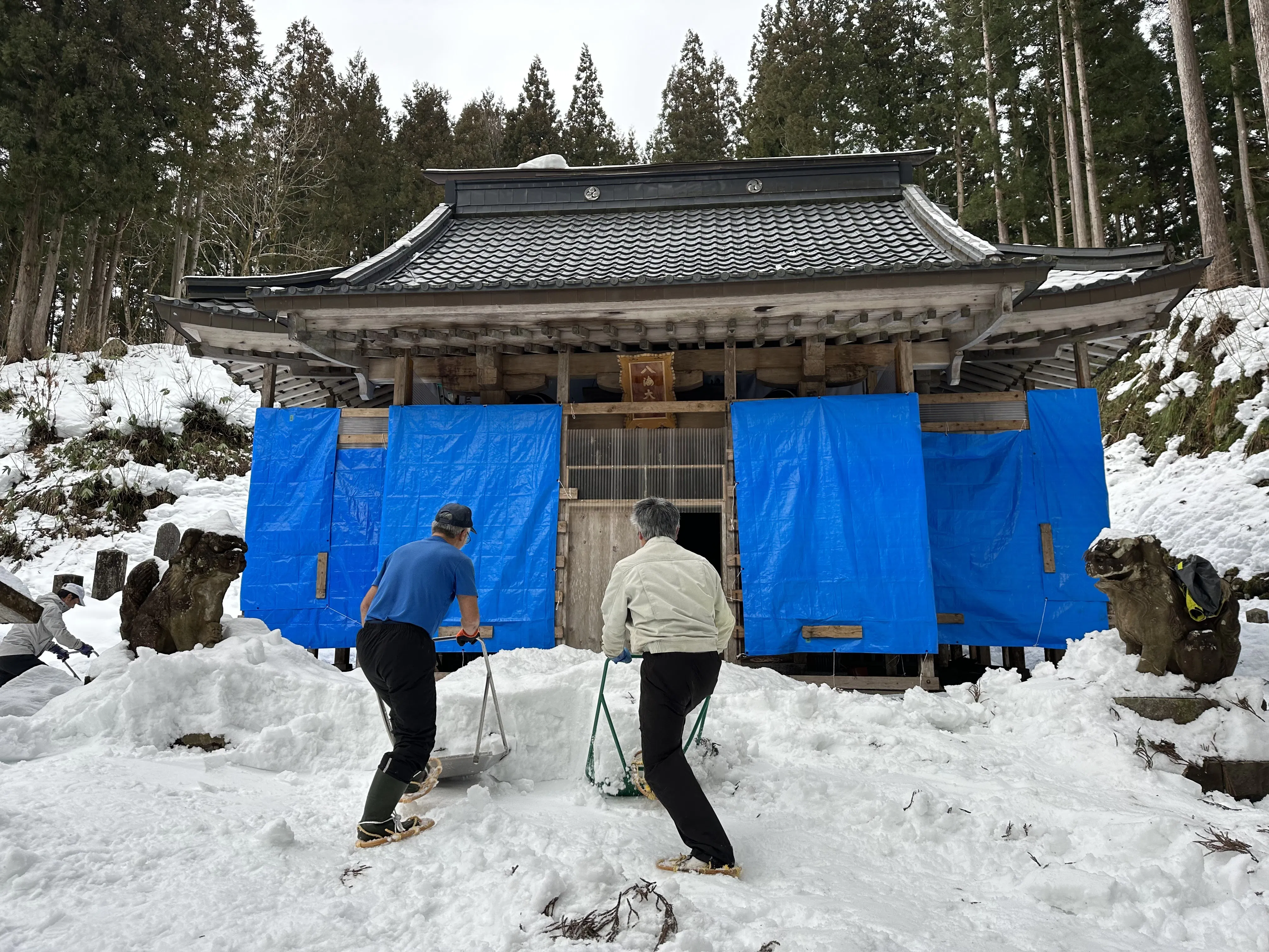 2024/02/04 10:30雪かき例年、神社は雪にすっぽりと埋まってしまうほど雪が降りますが、今年は少雪。それでも雪は重たく、屋根や柱に負担がかかります。いつも氏子の皆さんにご奉仕いただき、冬を乗り切っています。参道も冬場は雪に埋まって歩けなくなりますが、そこもまた、除雪していただきました。今後も地域に愛される神社であり続けたいと思います。また、今年の火渡祭にむけて、氏子、崇敬者と準備を進めていきます。 もっと見る