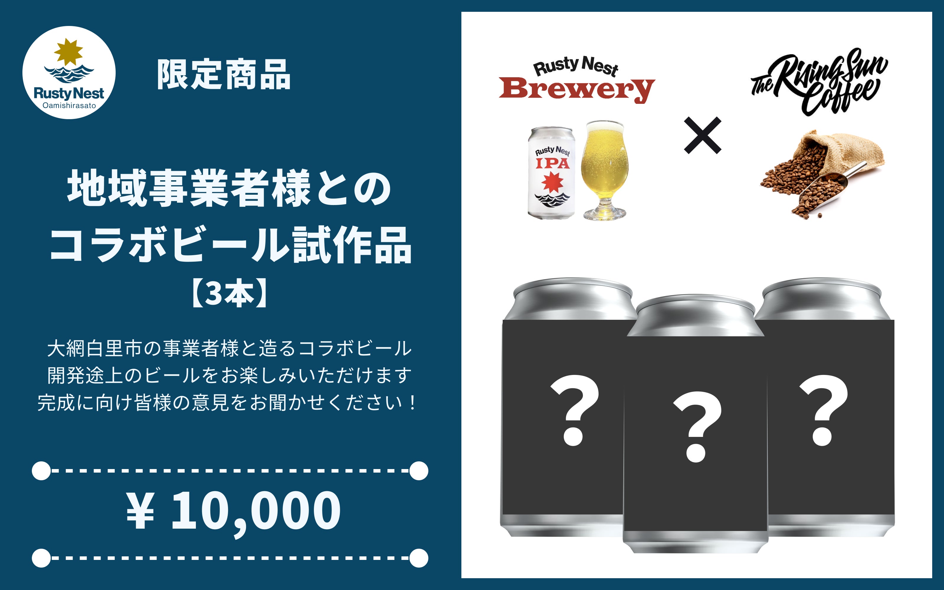 理想のビールが仕上がるまでは一般向けに販売は行いませんのでご支援者様にのみお届けさせていただきます。クラウドファンディング限定の非公式ビールをぜひご堪能いただき、私たちと理想のクラフトビールを造り上げましょう!