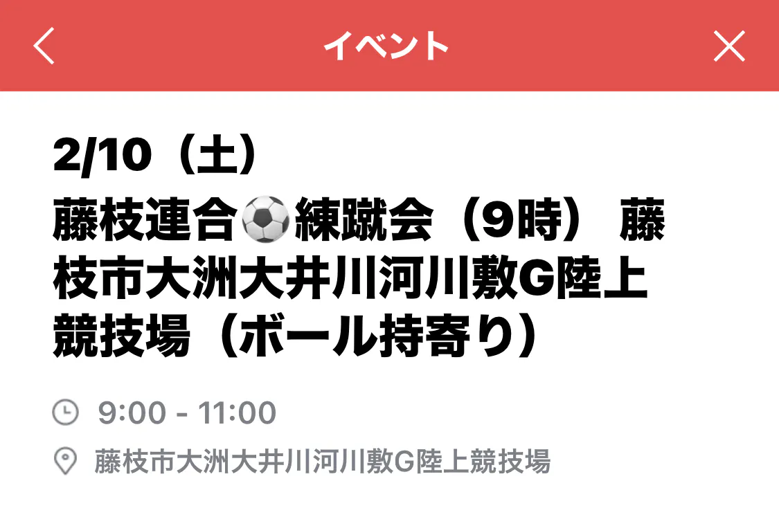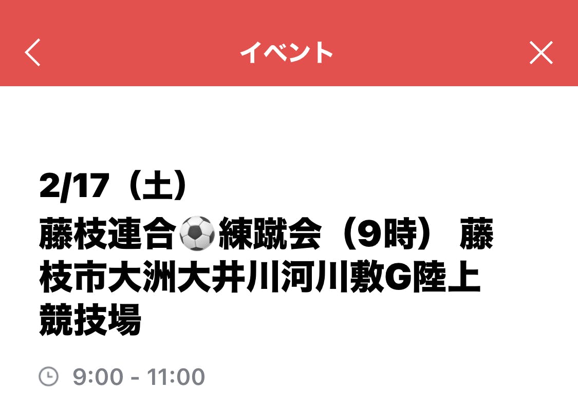2024/02/13 20:582月17日(土)「藤枝連合・練蹴会」やります!・飛び入り大歓迎!・毎週土曜日AM9時(時々日曜や祝日も^^!)・カテ、所属は不問・以降の定期参加は尚大歓迎!!【JFAグラスルーツ推進・賛同パートナー】認定(2021/11/15)http://www.jfa.jp/grass_roots/partner/gr_fujieda/ もっと見る
