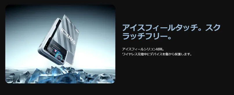 静電容量式距離感知パッチを使用しており、Iphone12 シリーズ以降のモデルであれば、ボタンをタップすることなくワイヤレス急速充電が可能となります。
