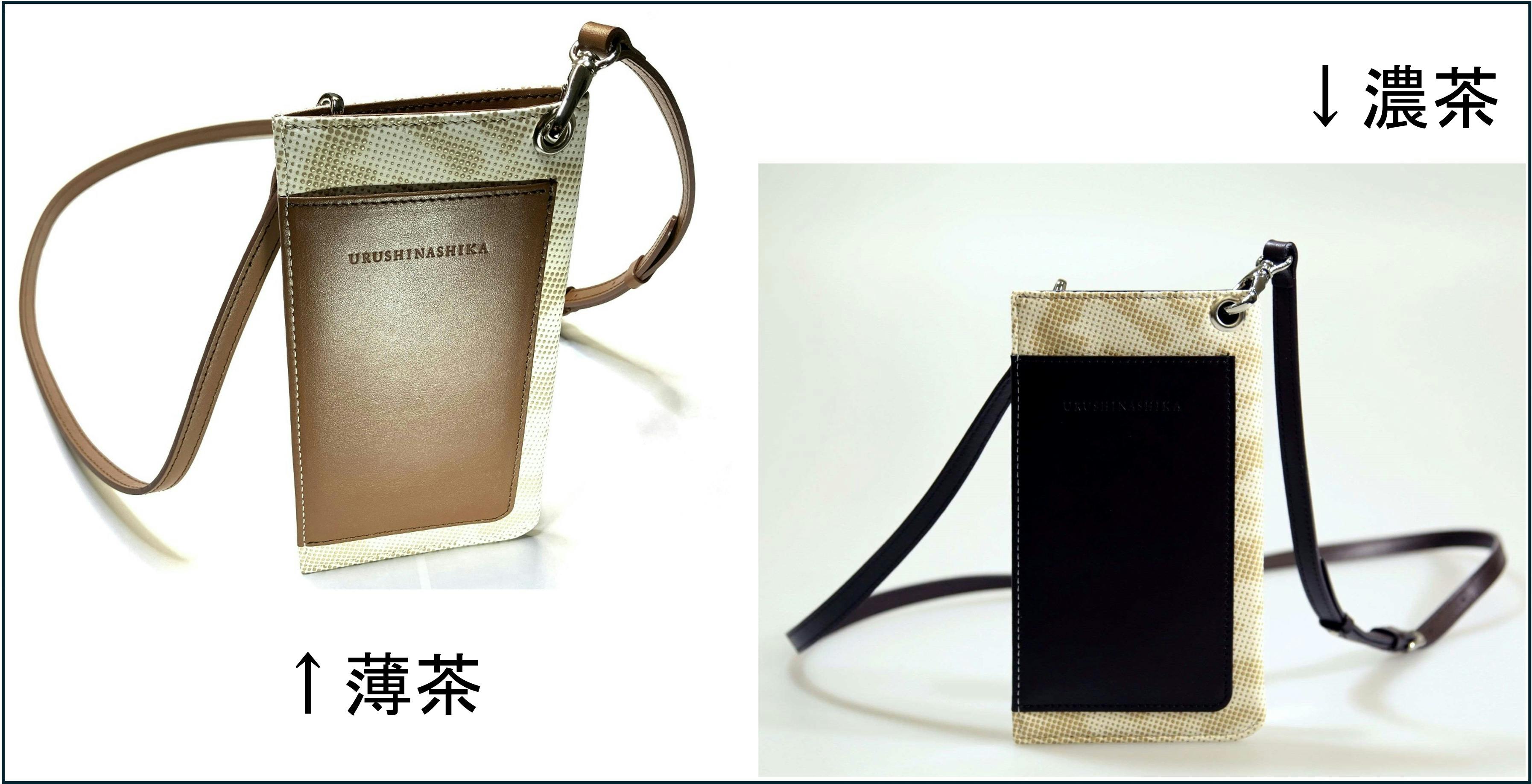 「URUSHINASHIKA」商品の印伝加工(漆付け)は「甲州印伝 伝統工芸士」の資格を持つプロが、又、縫製は日本鞄ハンドバッグ協会から1級に技術認定された鞄作りのプロが担っていて、Made in Japanです。 色は『白』を基本色としていますが、汚れにくいように撥水加工を3回施すなど印伝用に適した工夫が加えられています。