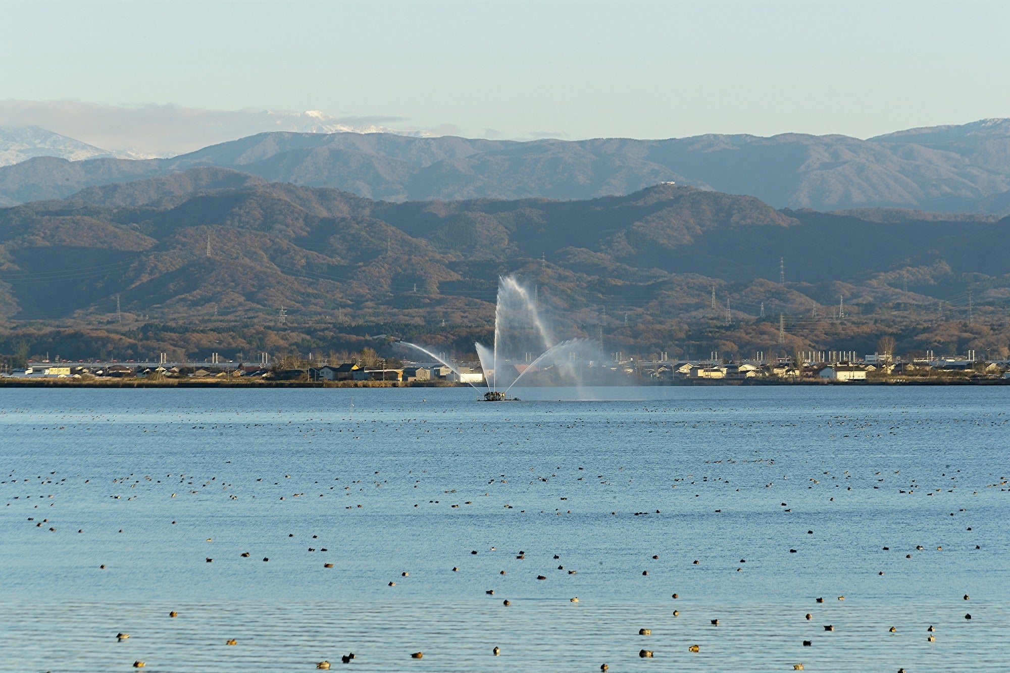 柴山潟には多くの野鳥が羽を休めに訪れます。