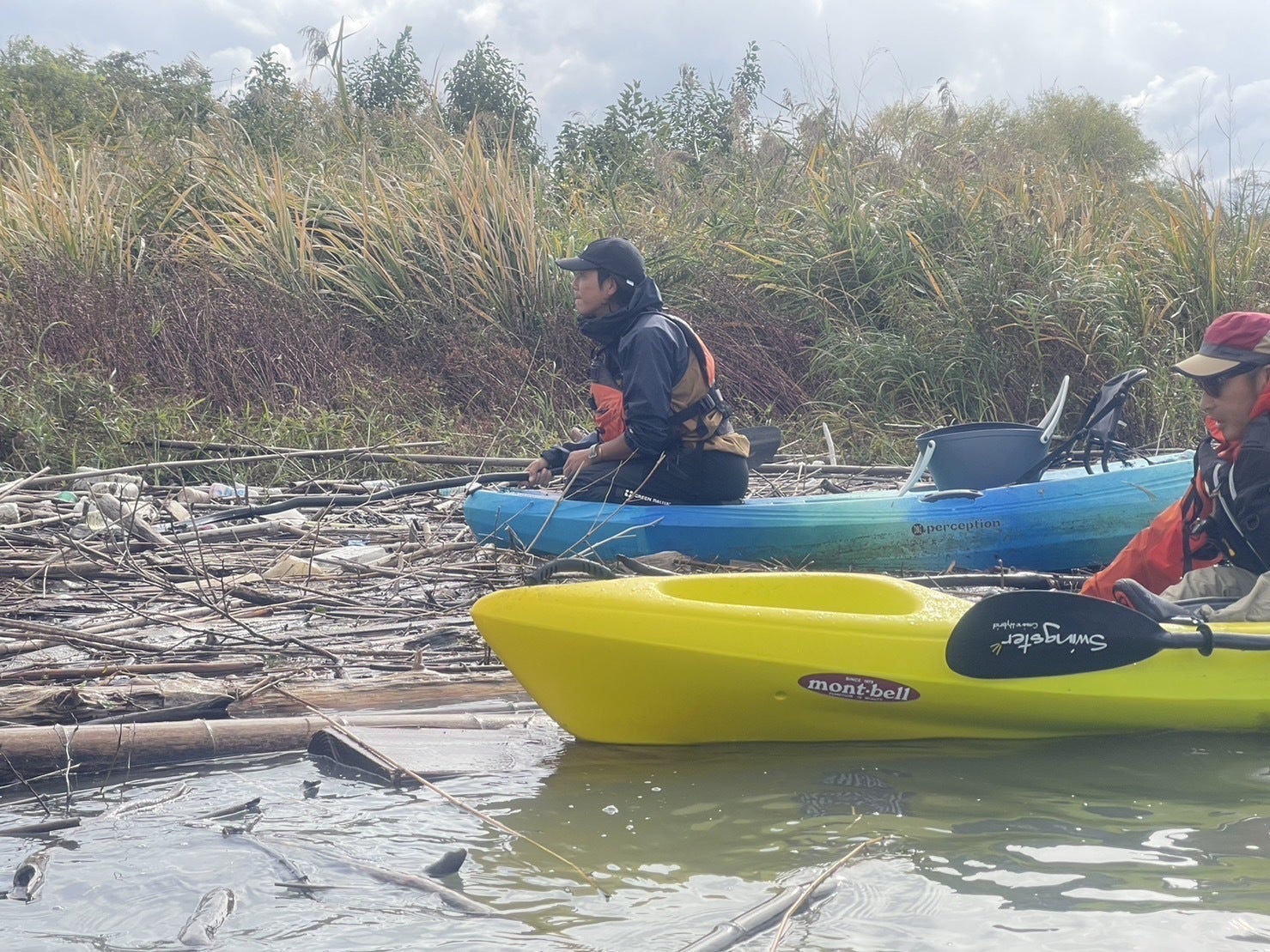 陸からでは回収できない水上のゴミはカヤックや船使って回収してます。