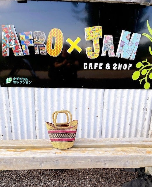 私たちには、タイガーナッツの生産を始めるときから、アフリカと日本の文化をつなぐ架け橋になりたいという熱い想いがありました。そんな中コロナ禍突入、イベント出展や委託先販売をメインにしておりましたが、イベントも中止が相次ぎ、委託先もどんどん減っていきました。そこで、そのタイガーッツを使ったカフェを始めることに、その想いを形にしたのが、現在経営している「カフェ&ショップAFRO×JAM(アフロジャム)」です。このお店では、私たちが生産するタイガーナッツを使った商品と、ナイジェリアで直接買い付けしたアフリカン雑貨を販売しています。特に自然素材のカゴバッグはすべて手作りで同じものがなく、見た目もアフリカの気候や人々のように明るく、元気になるカラフルな色使いで、大人気の商品となっています。そして、日本人には馴染がなく、そのままでは固くて食べにくいタイガーナッツを粉末にし、手軽に食べられるようグルテンフリーのグラノーラにしてみるなど、日々商品開発にも取り組んでおり、コアなファンが少しずつ増えてきています。そしてタイガーナッツ自体も、自分たちが納得できる品質のものを、徐々に生産できるようになってきました。そんな私たちの次の一歩として、タイガーナッツ収穫量の向上と作業効率の向上を目指しています。動画のように収穫が出来れば、格段に効率は上がります。