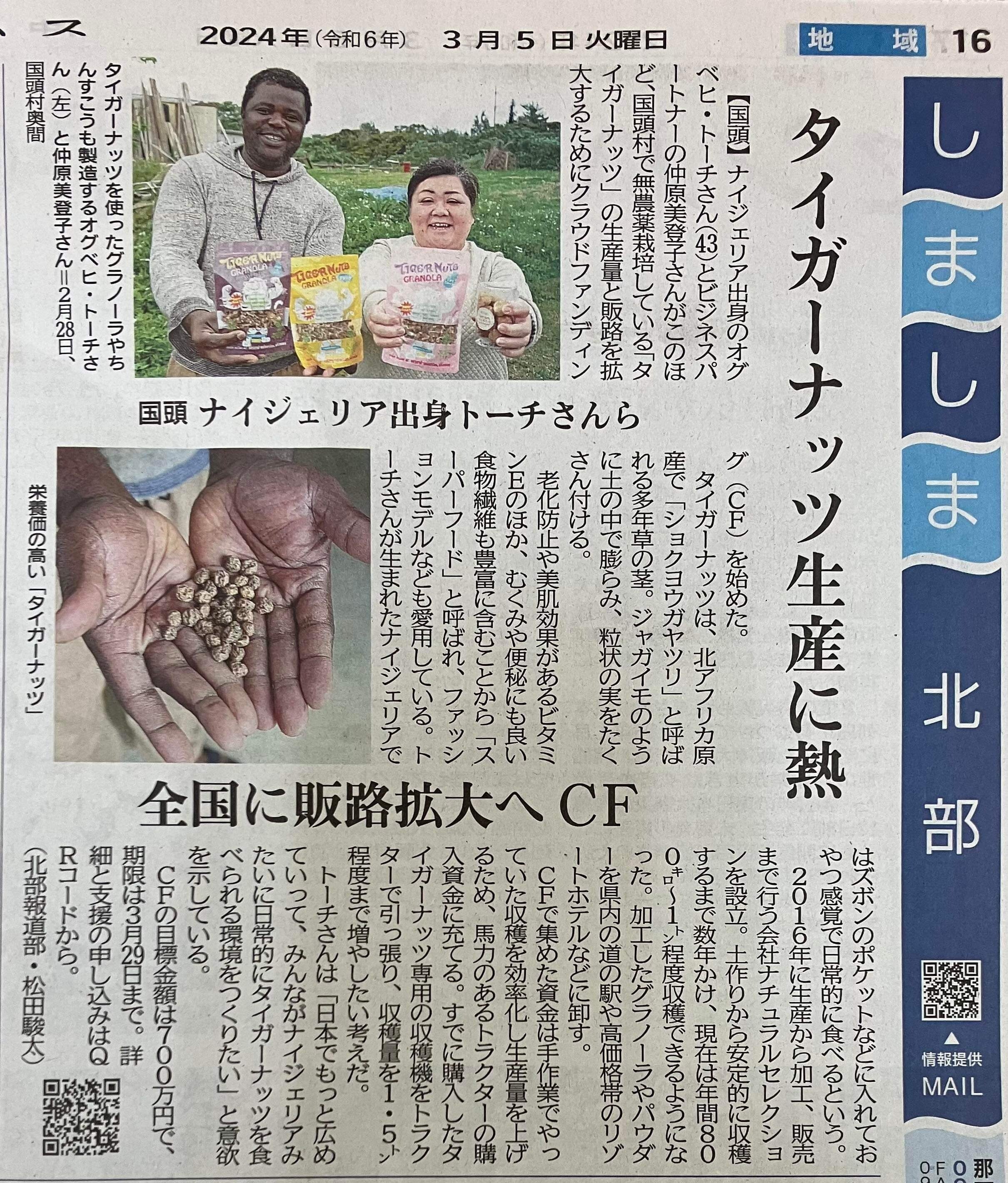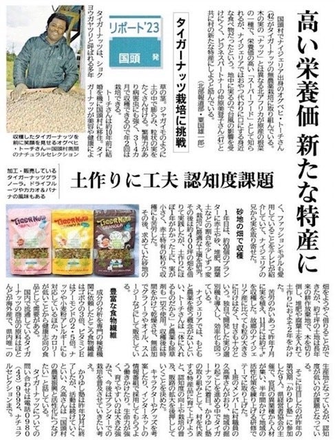 2024/03/06 14:46先月取材して頂いた記事が3月5日発売の雑誌『おきなわいちば』さんに掲載されました。沖縄のグラノーラ特集ということで、弊社のタイガーナッツグラノーラを取り上げて頂いております。無農薬栽培を心掛け、丁寧に栽培しているタイガーナッツを使ったグルテンフリー、ナッツフリー、アレルギーフリー、ヴィーガンの方にも安心してたべて頂けるタイガーナッツグラノーラです。多くの皆様の目に触れることが大変うれしいです。 よろしくお願いいたします。 もっと見る