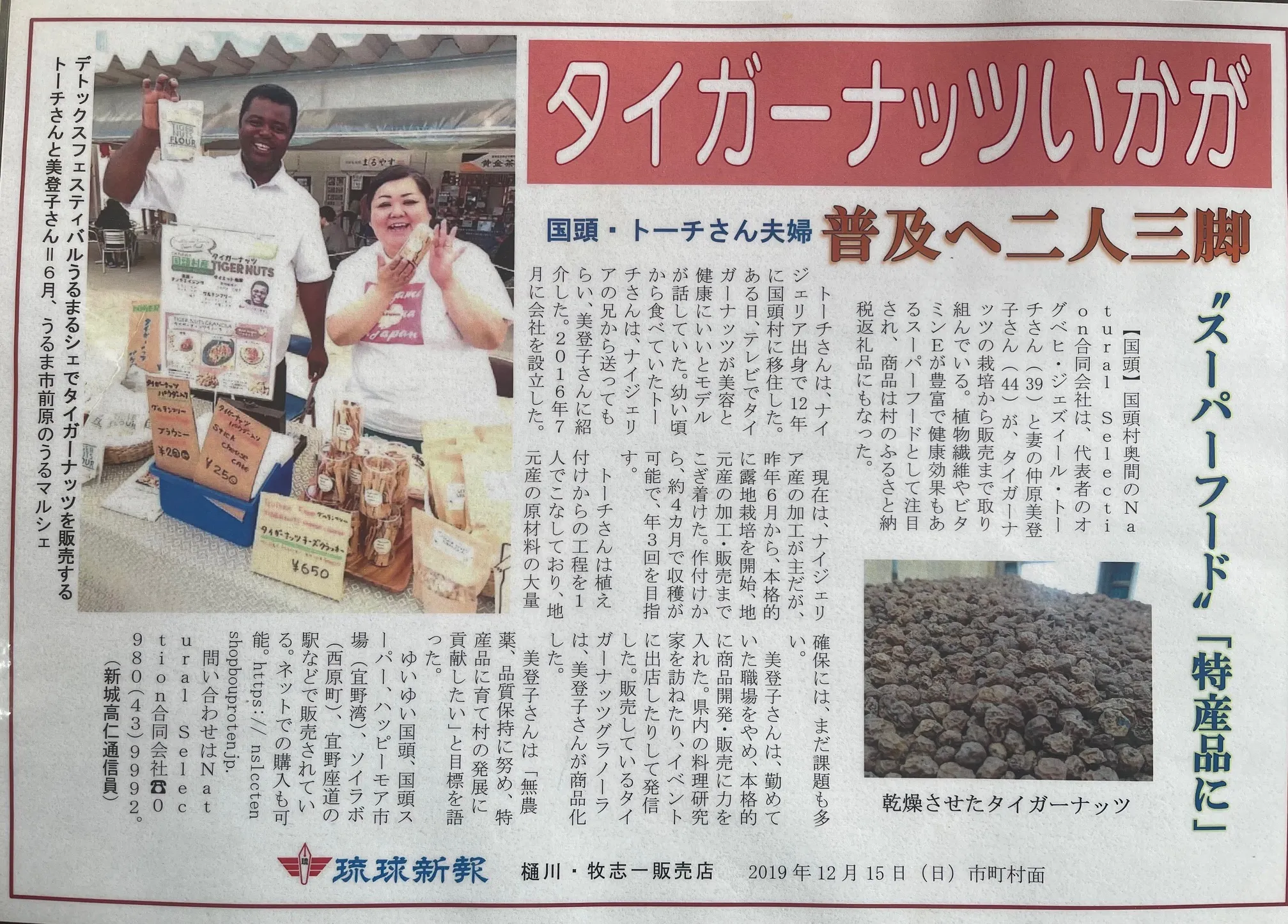 世界自然遺産の山を登っていくと辿り着く、natural selection。店内に入るドアを開けるといつも明るく迎えてくれるお二人がオーナーさんです。「辺土名」がご出身である、みとさん。そしてアフリカのナイジェリアがご出身である、トーチ。世界は繋がっていて1つなんだといつも感じさせていただいております。タイガーナッツは栄養成分もとても豊富で、スーパーフード。そんな農薬不使用にこだわり自然の恵みいっぱいのタイガーナッツが一人でも多くの皆様に届いたらいいなと私も想っております。お二人の活動、心の底から応援しています。そして何より、お二人のお人柄が大好きです!皆様、是非お心添え宜しくお願いいたします。