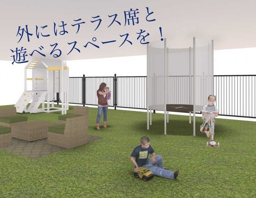 2024年夏までに飲食店に伴う子ども食堂をスタート。子育て世代が安心して幼児を遊ばせられる設備やテラス席を導入。