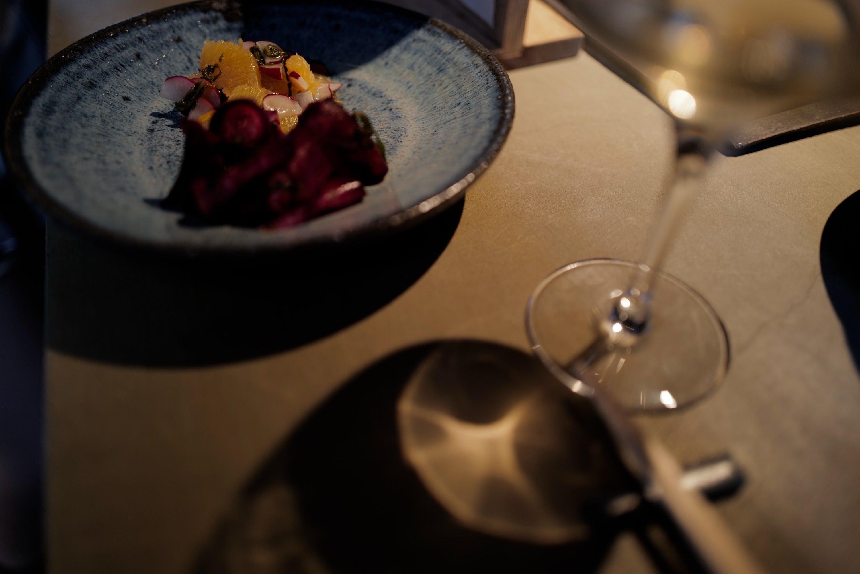 2024/03/14 20:21本日3月14日(木)は第二回目の試食会でした!春も近づき少し暖かい日に試食会ができてとっても気持ちよかったです。お料理は間違いない仕上がり。さすが田中さん、太田さん。西宮北口店では田中さんが料理を監修、太田さんが実際にお店で提供してくれます。なんとも頼もしいお二人はいつも笑顔で本気。メンバー紹介は次回の活動報告で。お楽しみに!昆布とホタテと桜の塩漬け 昆布とホタテの海の旨みが桜の山の香りと見事に調和されている。菜の花の柔らかい苦味がちょうど良い。ワインを進ませてくれる。色味もとても鮮やかでみて美味しい。もちろん食べたら至福に間違いない。ビーツニョッキと春野菜 自家製カラスミ振りかけてニョッキのもちもちの食感と春野菜のシャキシャキ感が食欲をそそる。そこに自家製のカラスミがふりかかる。カラスミの香りがワインを一口、料理を一口のエンドレスへと誘う。アサリの白ワイン蒸し ブンサオそうめんのような麺。フォーではなくブンを使用。細麺なので喉越しもよく、お酒を楽しんだ後にはちょうどよい。優しく胃袋を満たしてくれる。別添えのハーブ。バジル、パクチー、ミントなどをまぜて食べるとアサリの旨みとハーブの香りがまたワインを飲みたくしてくるのはご愛嬌。サーモンのミキュイサーモンに半分だけ火を通してあるので食感はフワフワ。えっこれサーモン!?ってびっくりしてしまうほど。そこに魚醤にブラッドオレンジを漬け込んだソースでいただく。柑橘とサーモンを一緒に口の中に放り込めば一体感となる。その時無意識にワインを口に運ぶことになるだろう。 もっと見る
