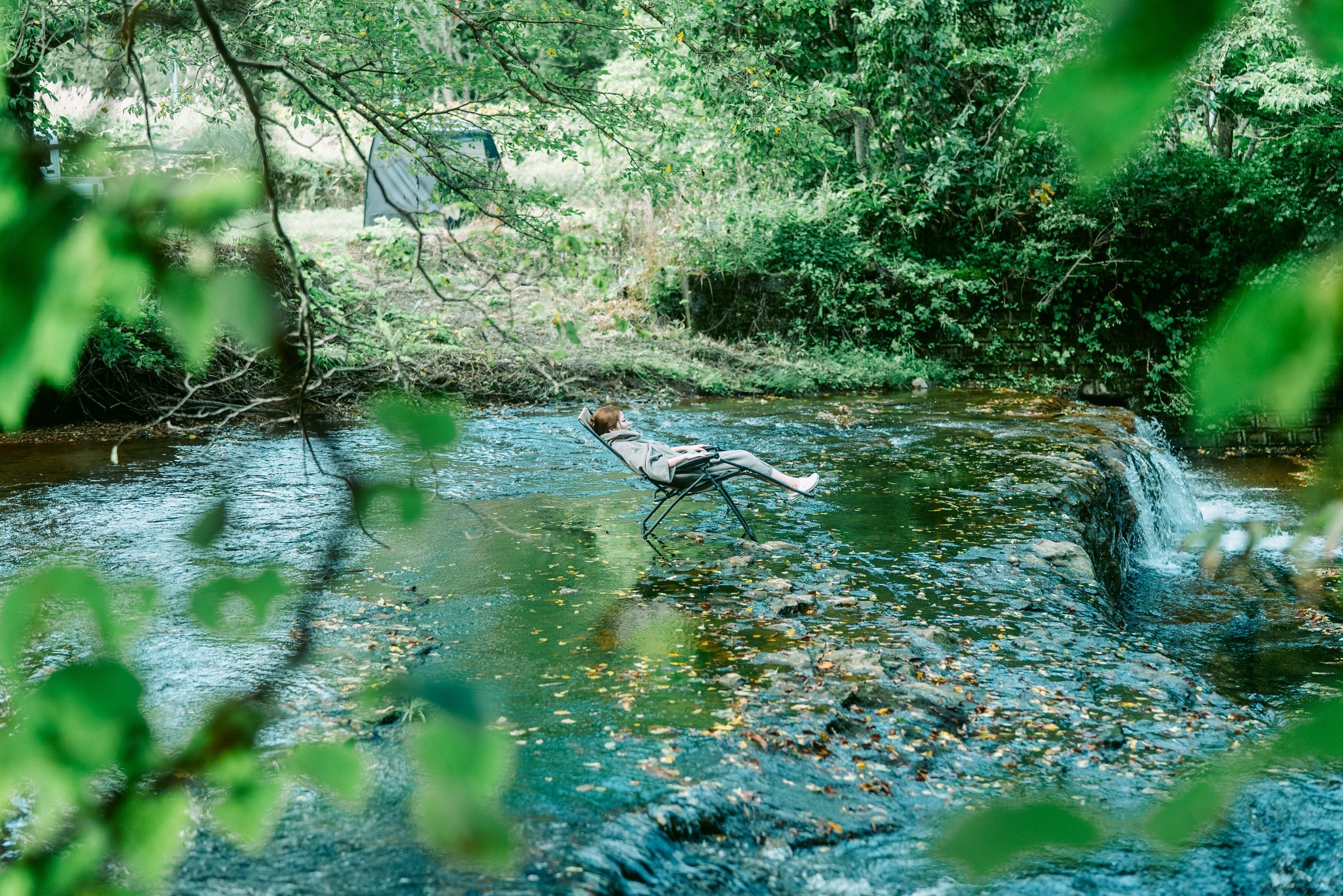 サウナのすぐそばには、川の伏流水を使用した天然の水風呂。