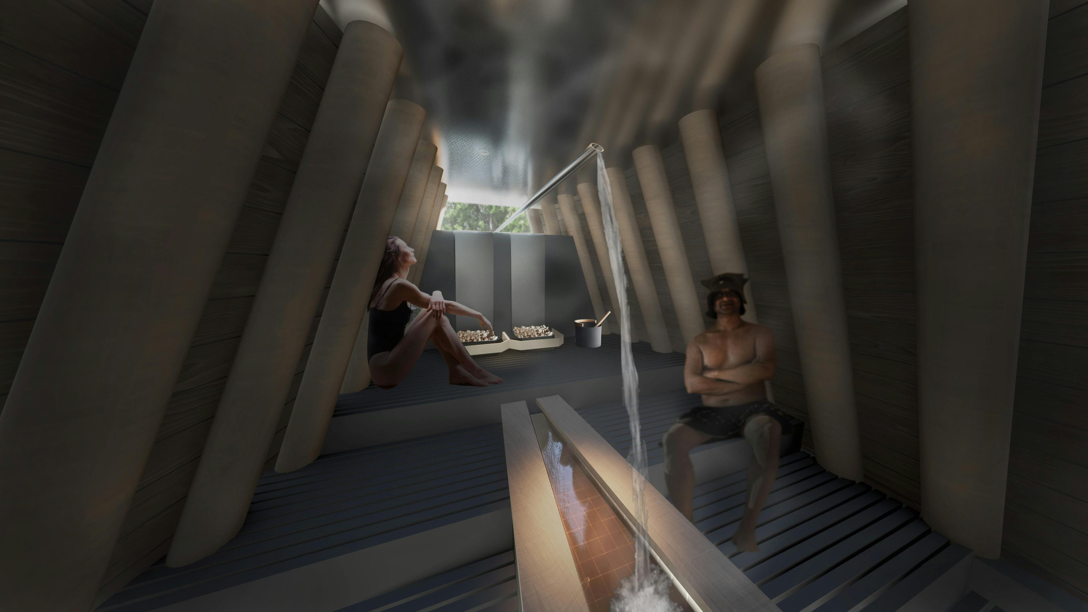 それは太古からの大地の力であり、極めて<原始的(プリミティブ)>なものが「知内温泉」に残されているからでは、ということでした。そこで<原始的(プリミティブ)>をテーマに森屋隆洋が設計を開始し、生まれたのが知内温泉サウナ、題して「呼吸の間」です。